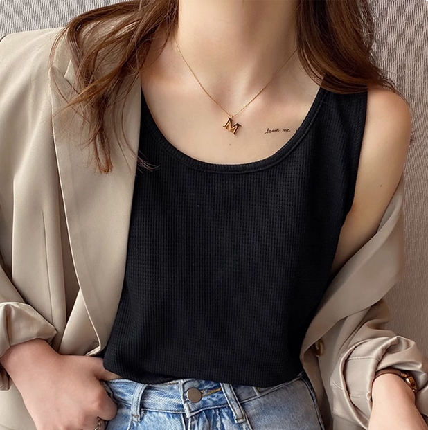 冰丝针织吊带背心女宽肩夏季外穿薄款无袖修身西装内搭打底衫V领