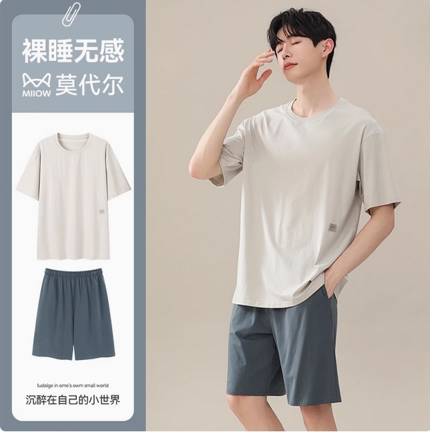 猫人睡衣夏季男款莫代尔短袖2025新款宽松可外穿高级感男士家居服