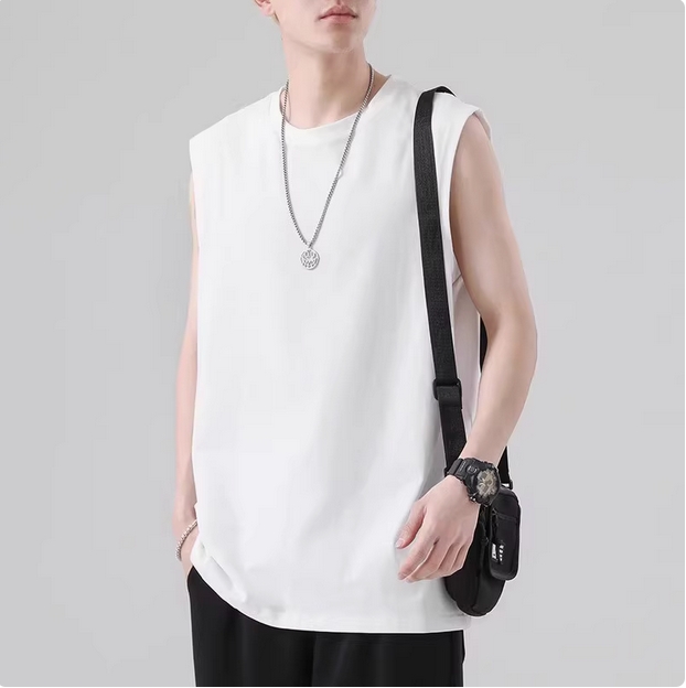 白色背心男夏季青少年基础款宽松港风无袖t恤衫大码休闲打底衫ins
