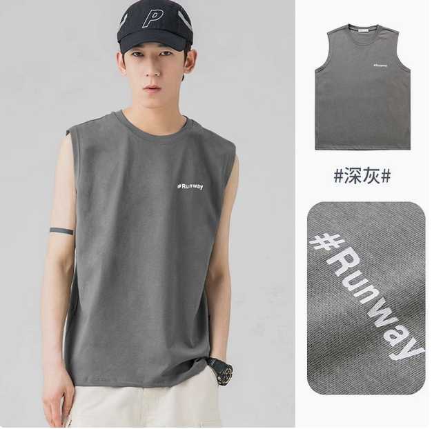 WOODSOON无袖坎肩背心男士夏季薄款潮流ins字母宽松青年打底上衣