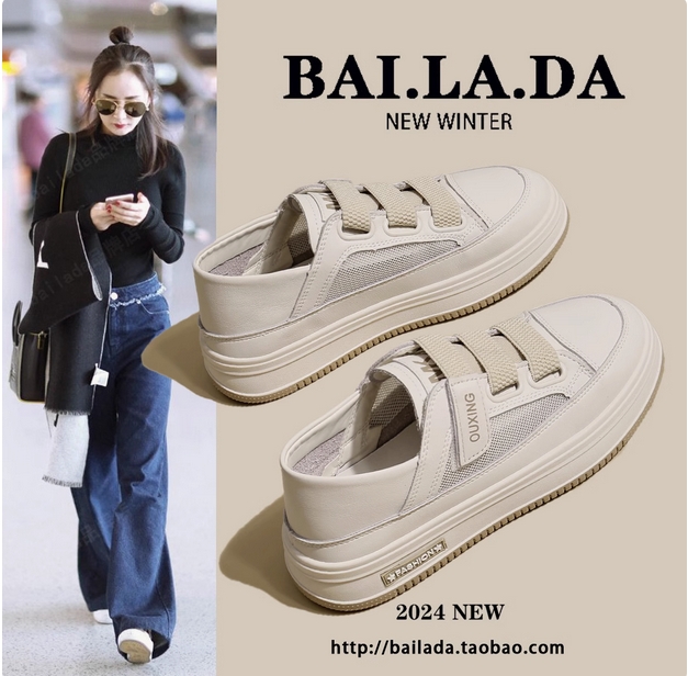 爆款透气一脚蹬小白鞋女款2025春季新款两穿夏天厚底网面薄款夏款