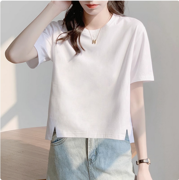 白色t恤女短袖宽松下摆开叉半袖纯棉百搭2025新款夏装内搭打底衫