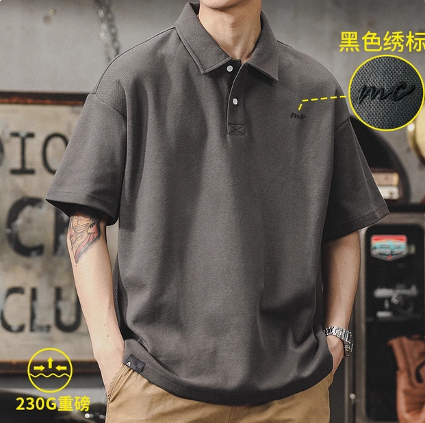 美式复古POLO衫男夏季简约风重磅男装宽松大码男士短袖T恤保罗衫