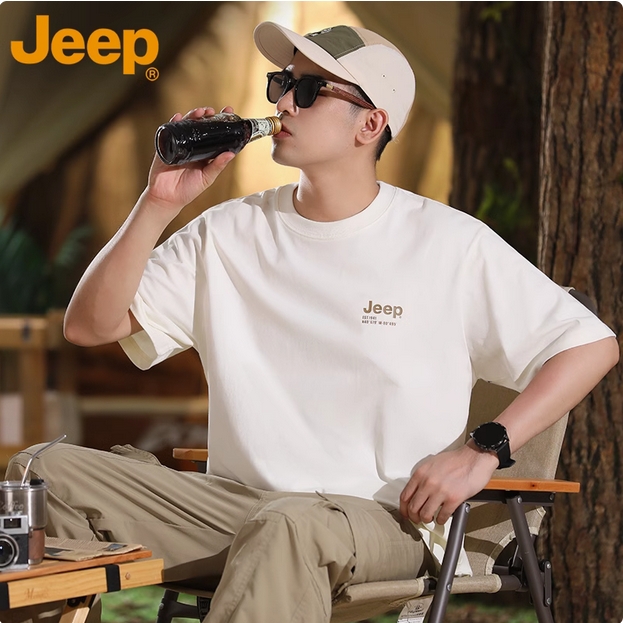 JEEP吉普白色T恤男士高品质纯棉打底衫体恤夏季圆领重磅短袖上衣