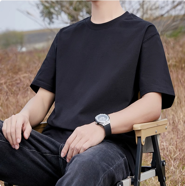 320g重磅高端纯棉短袖t恤男2025夏季宽松厚款高克重纯白色不透点