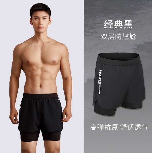 匹克游泳裤男士泳帽泳镜三件套温泉防尴尬沙滩裤男款成人游泳装备