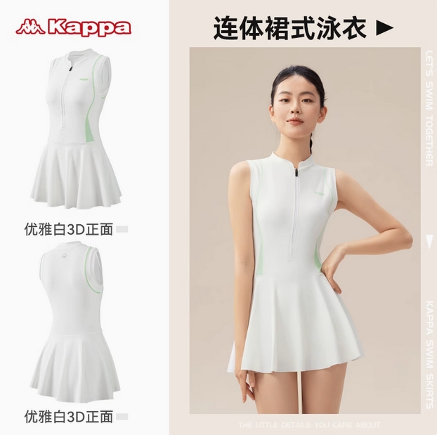 Kappa连体游泳衣女孩款防晒保守大码女士泳装2025新款游泳馆专用
