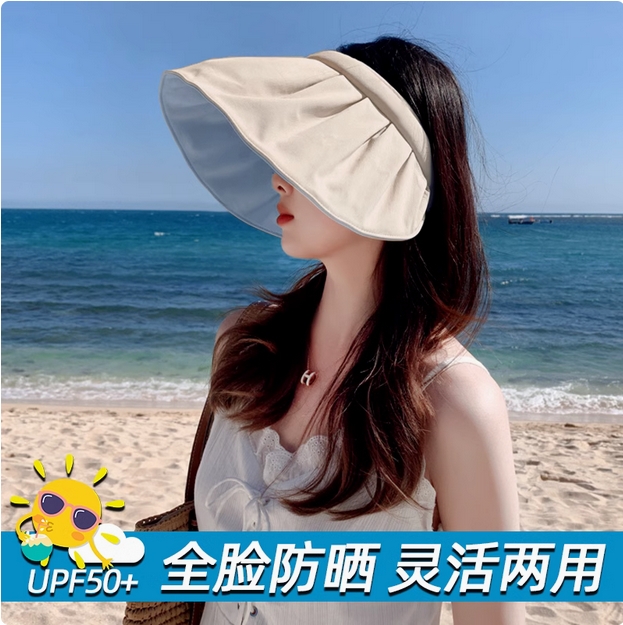 防晒帽女夏季防紫外线贝壳遮阳帽空顶太阳帽子大檐夏天儿童可折叠
