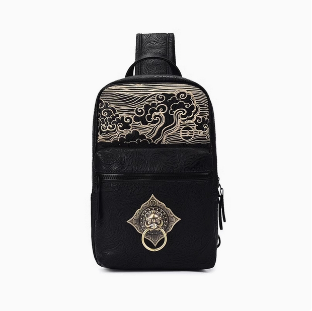 初弎中国风潮牌斜挎包男士小众单肩包高级感休闲潮流复古背包胸包