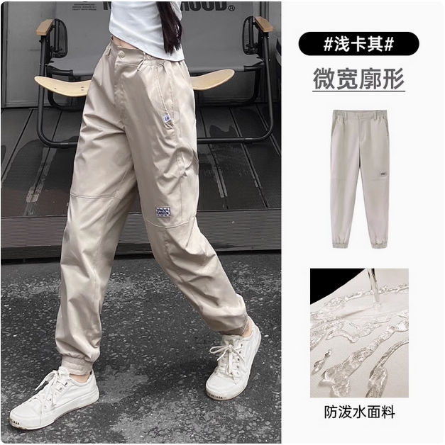 骆驼女装运动休闲裤2025春夏新款防水宽松长卫裤束脚工装裤女裤子
