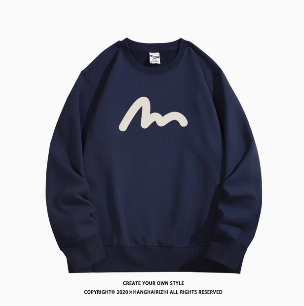 2025春秋款藏蓝色卫衣男圆领潮牌上衣宽松冬季加绒加厚无帽外套潮