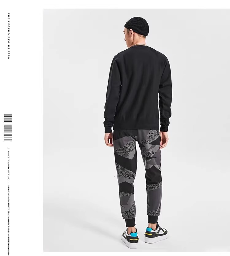 李宁卫衣男春秋新款黑色圆领套头衫正品大码宽松外套休闲长袖上衣