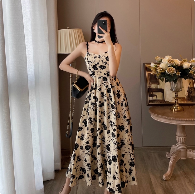 碎花吊带连衣裙女2025春装新款法式复古赫本风高级感气质两件套装