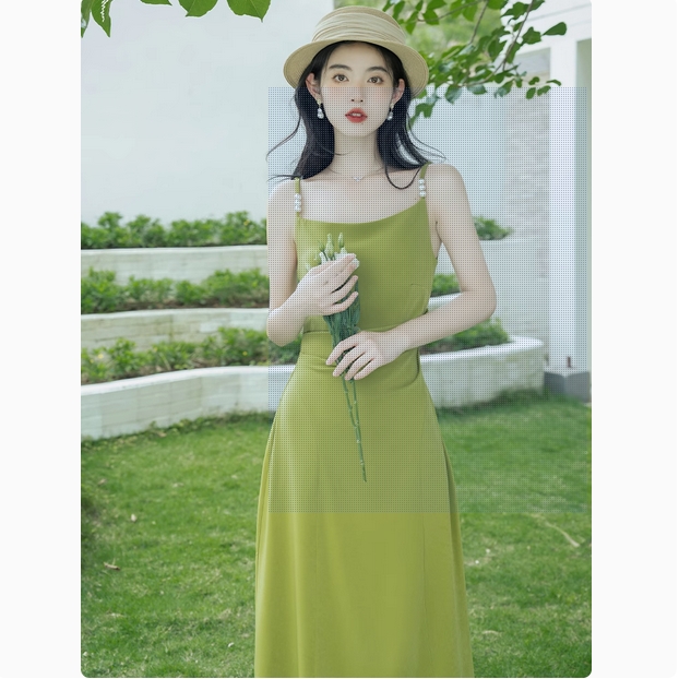 法式绿色连衣裙夏季2025新款高级感气质绝美超仙吊带开衫两件套装