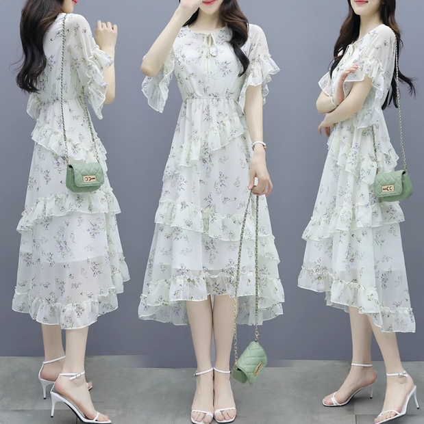 早春碎花雪纺连衣裙女夏2025年新款女装显瘦时尚气质仙女蛋糕裙子