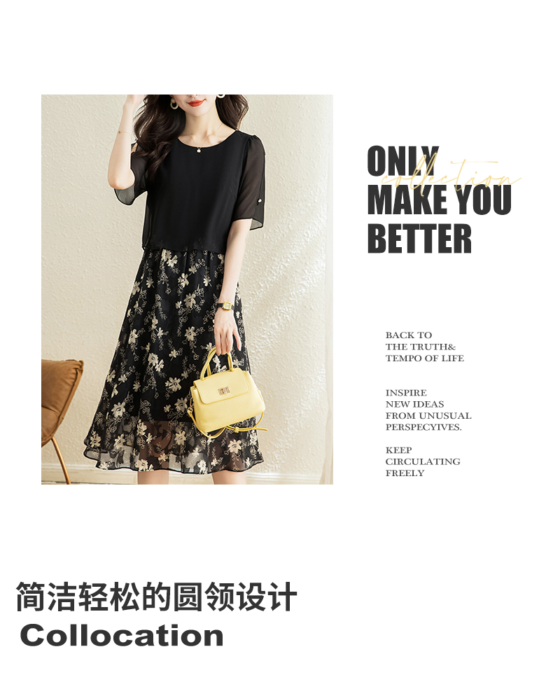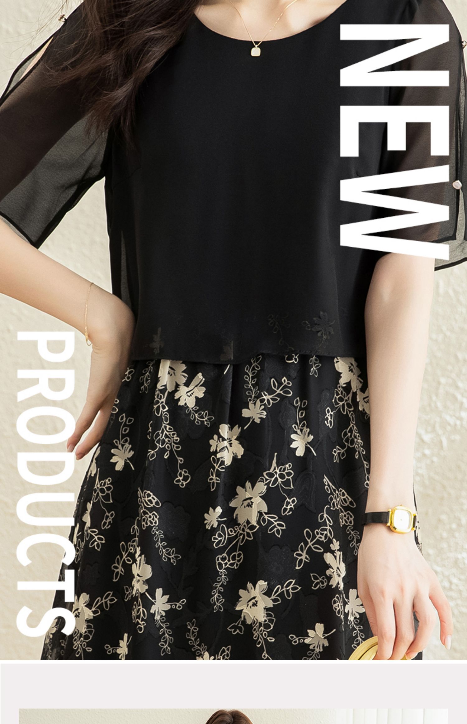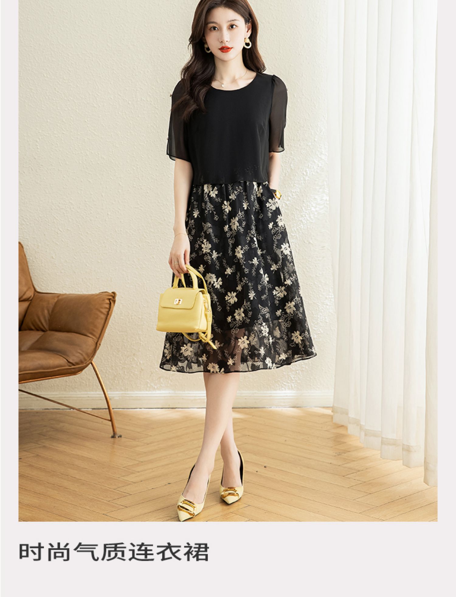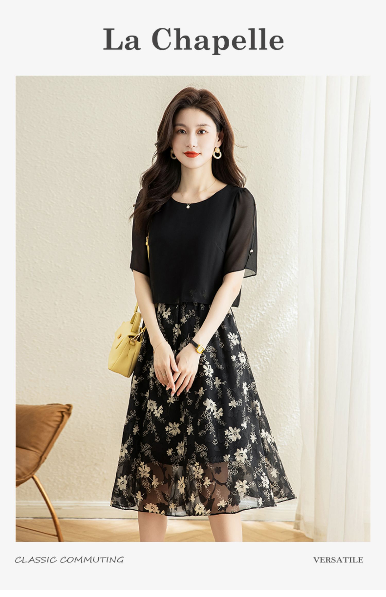 拉夏贝尔雪纺连衣裙女春夏2025新款高端轻奢高级感礼服假两件套装