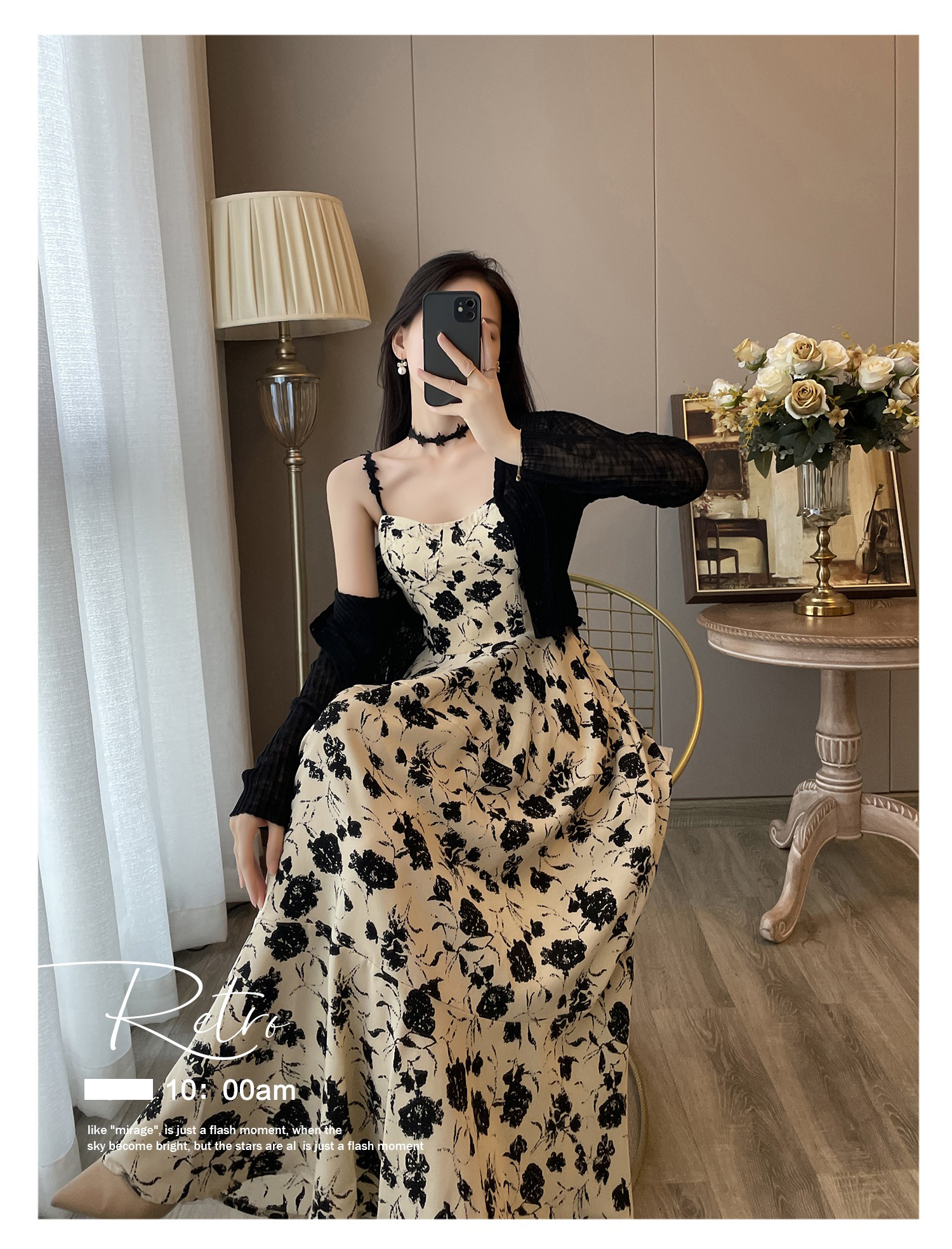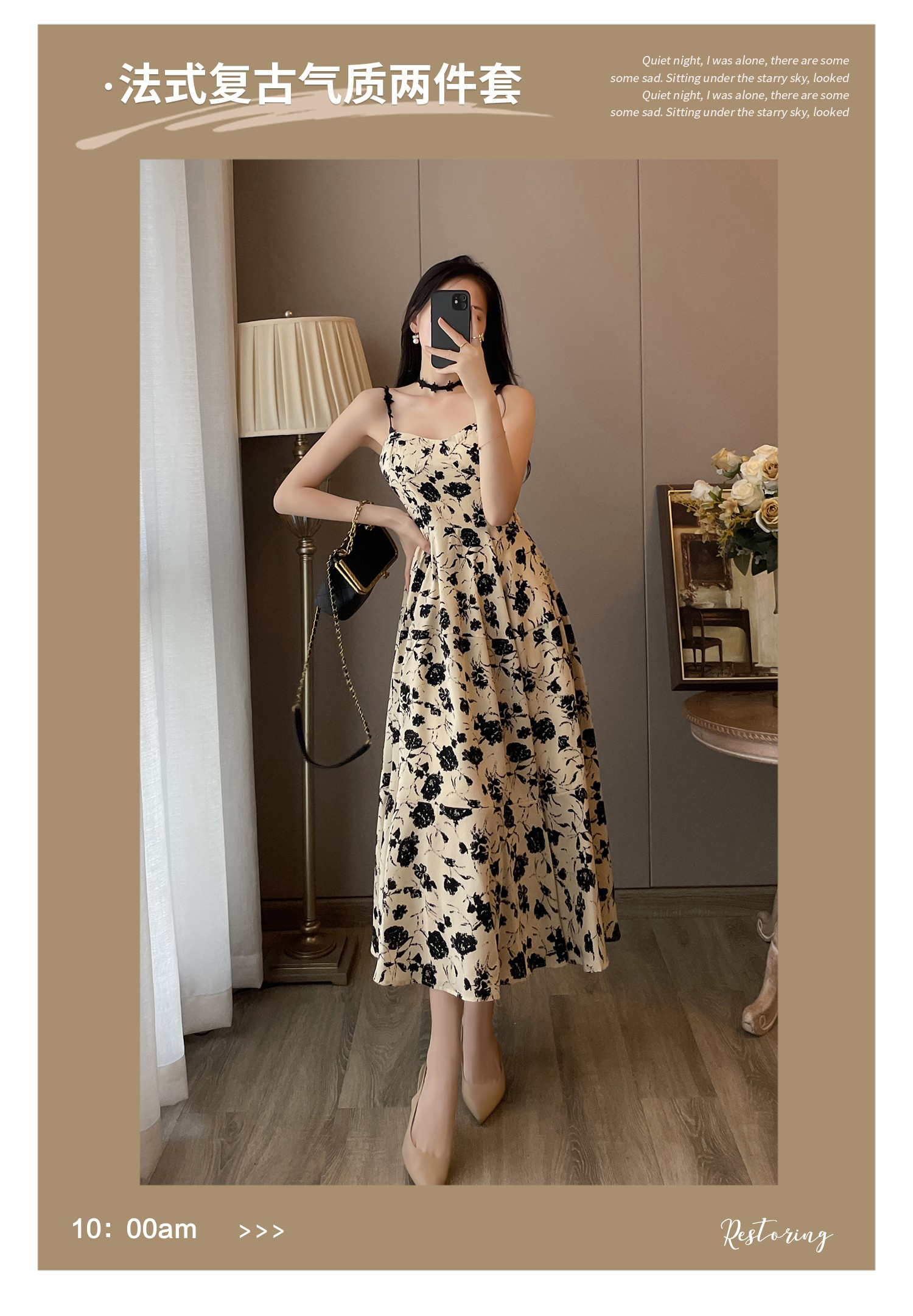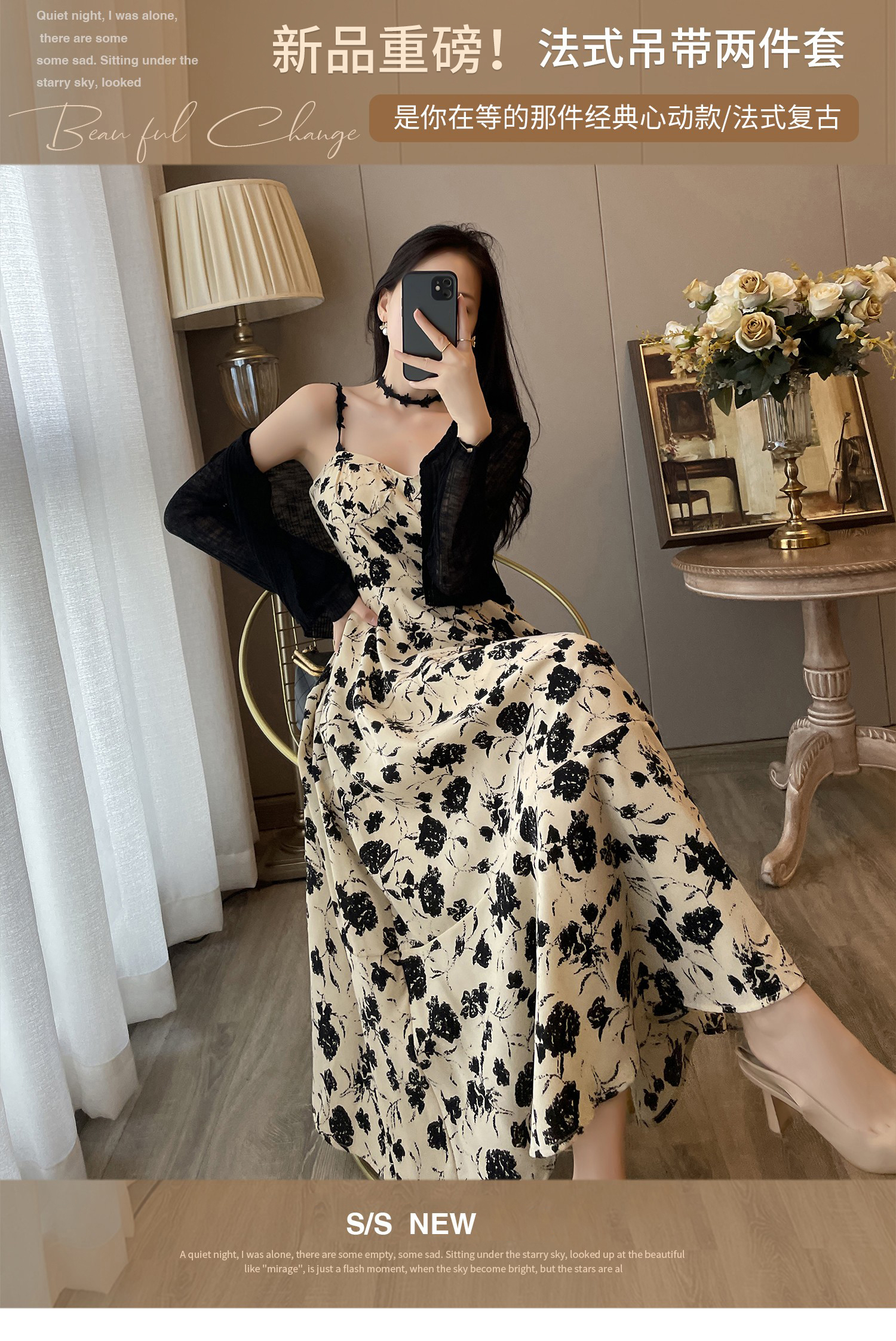 碎花吊带连衣裙女2025春装新款法式复古赫本风高级感气质两件套装