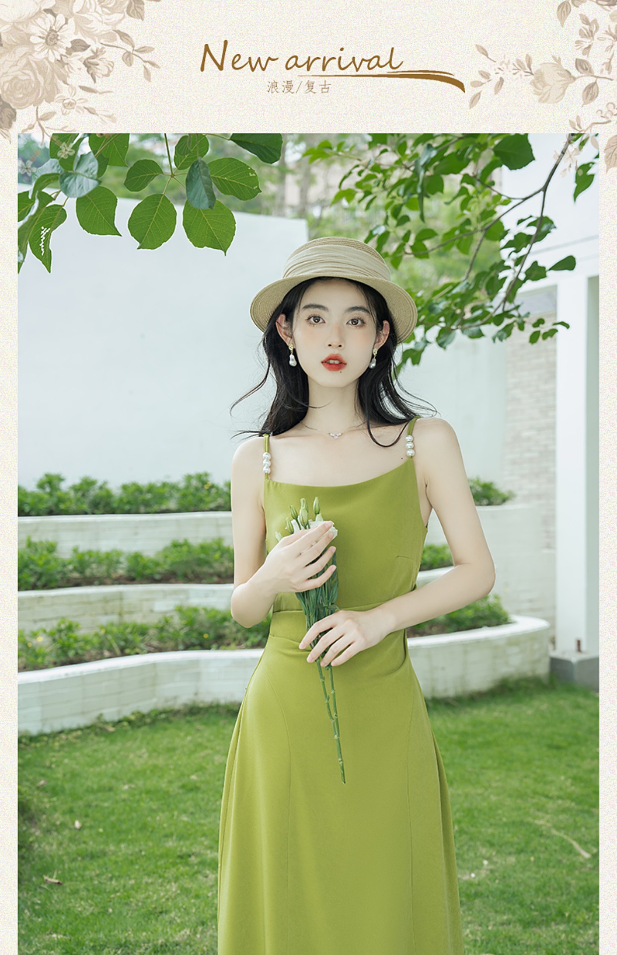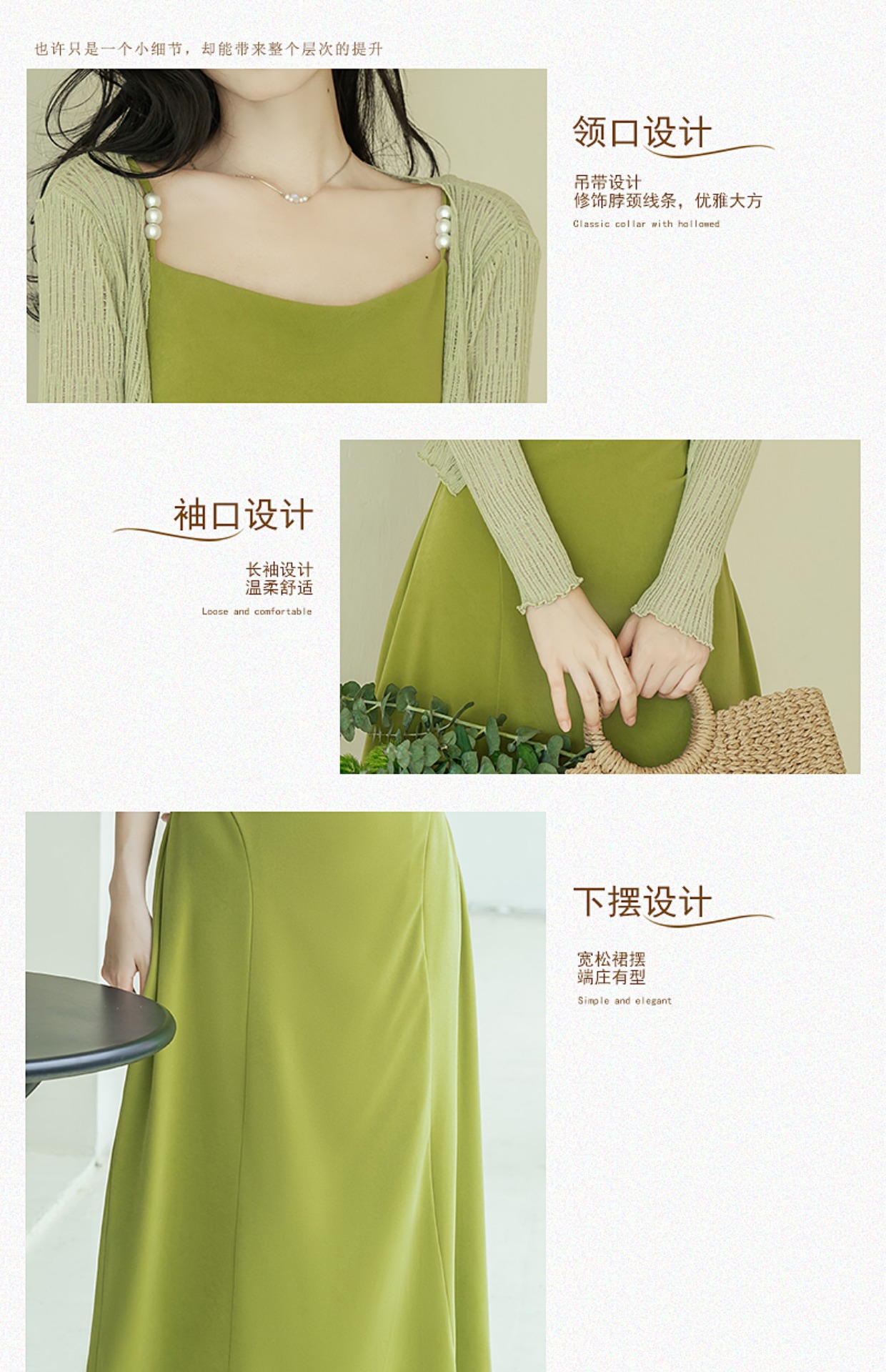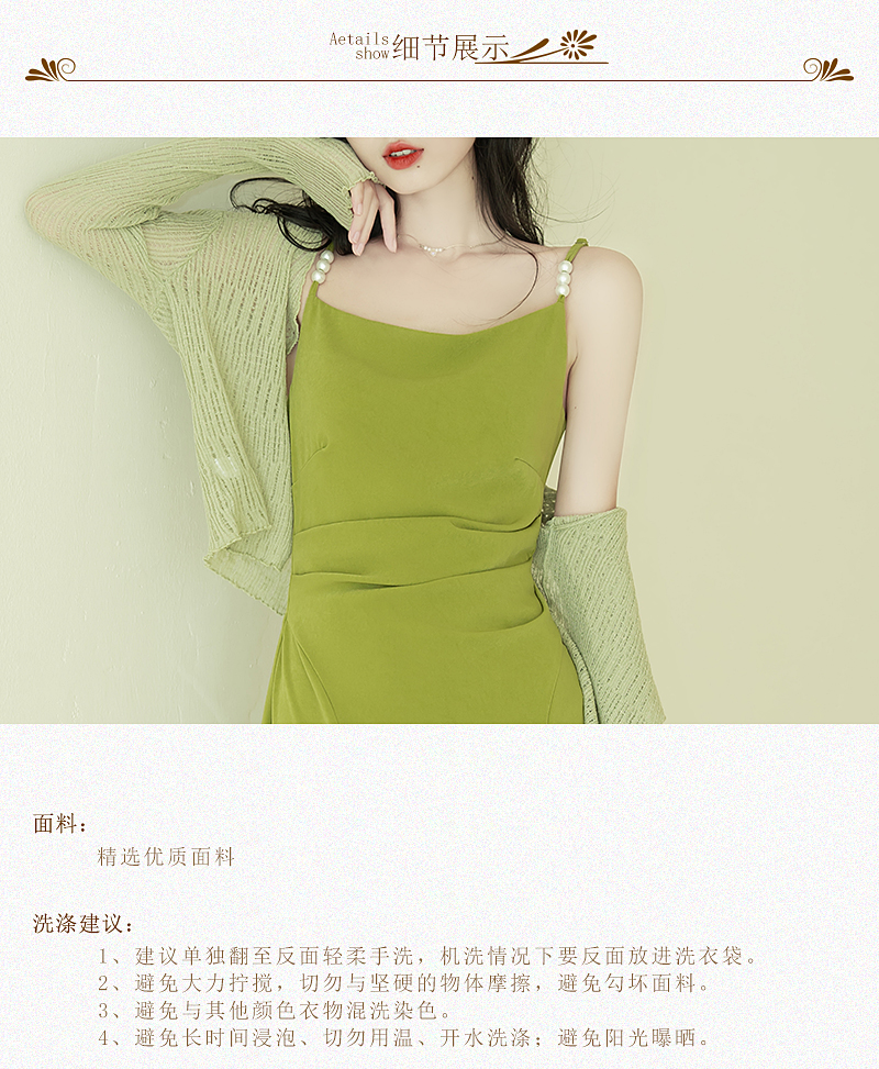 法式绿色连衣裙夏季2025新款高级感气质绝美超仙吊带开衫两件套装