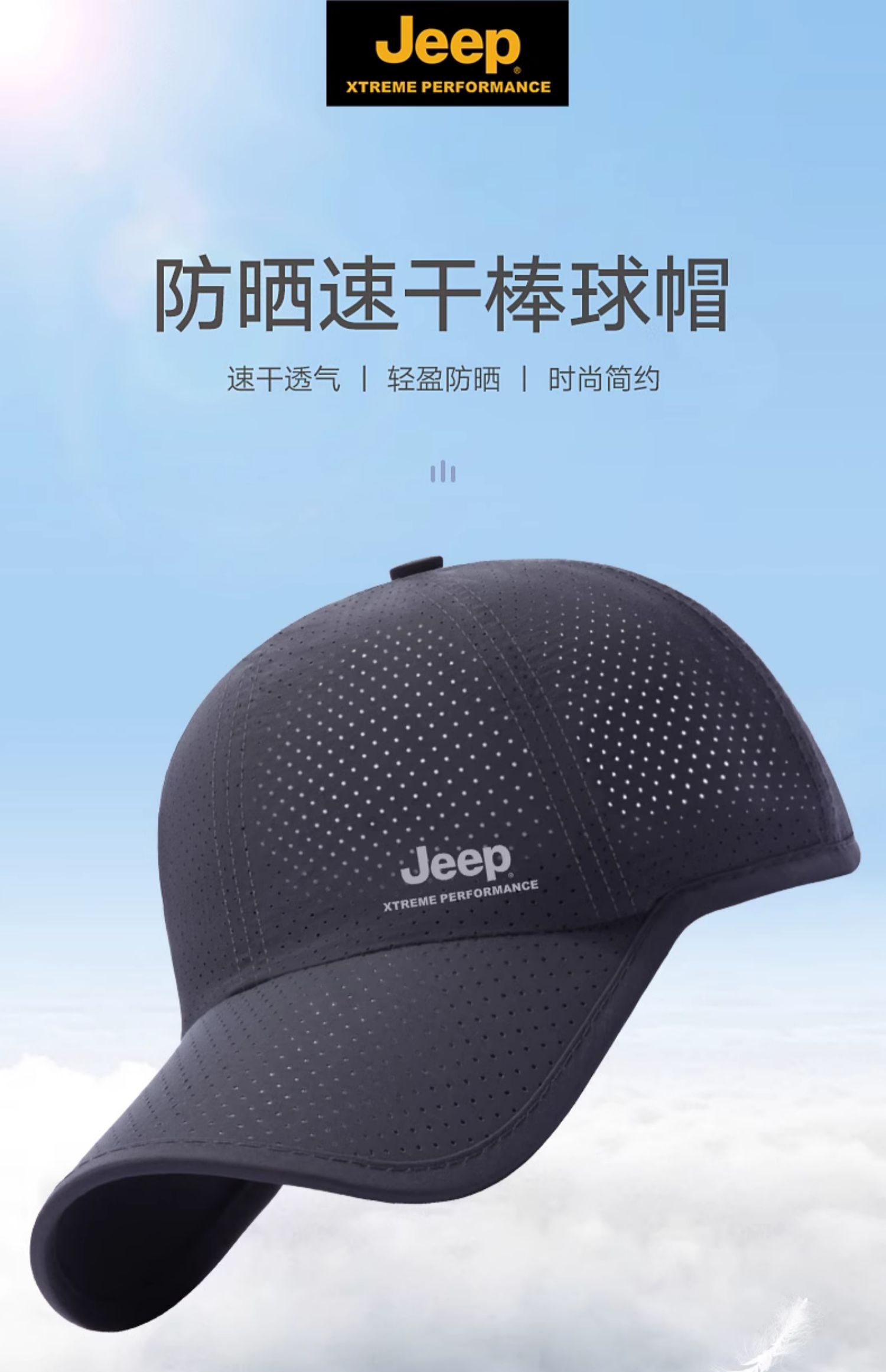jeep吉普帽子男士鸭舌夏季男户外太阳网眼透气钓鱼防晒遮阳棒球帽