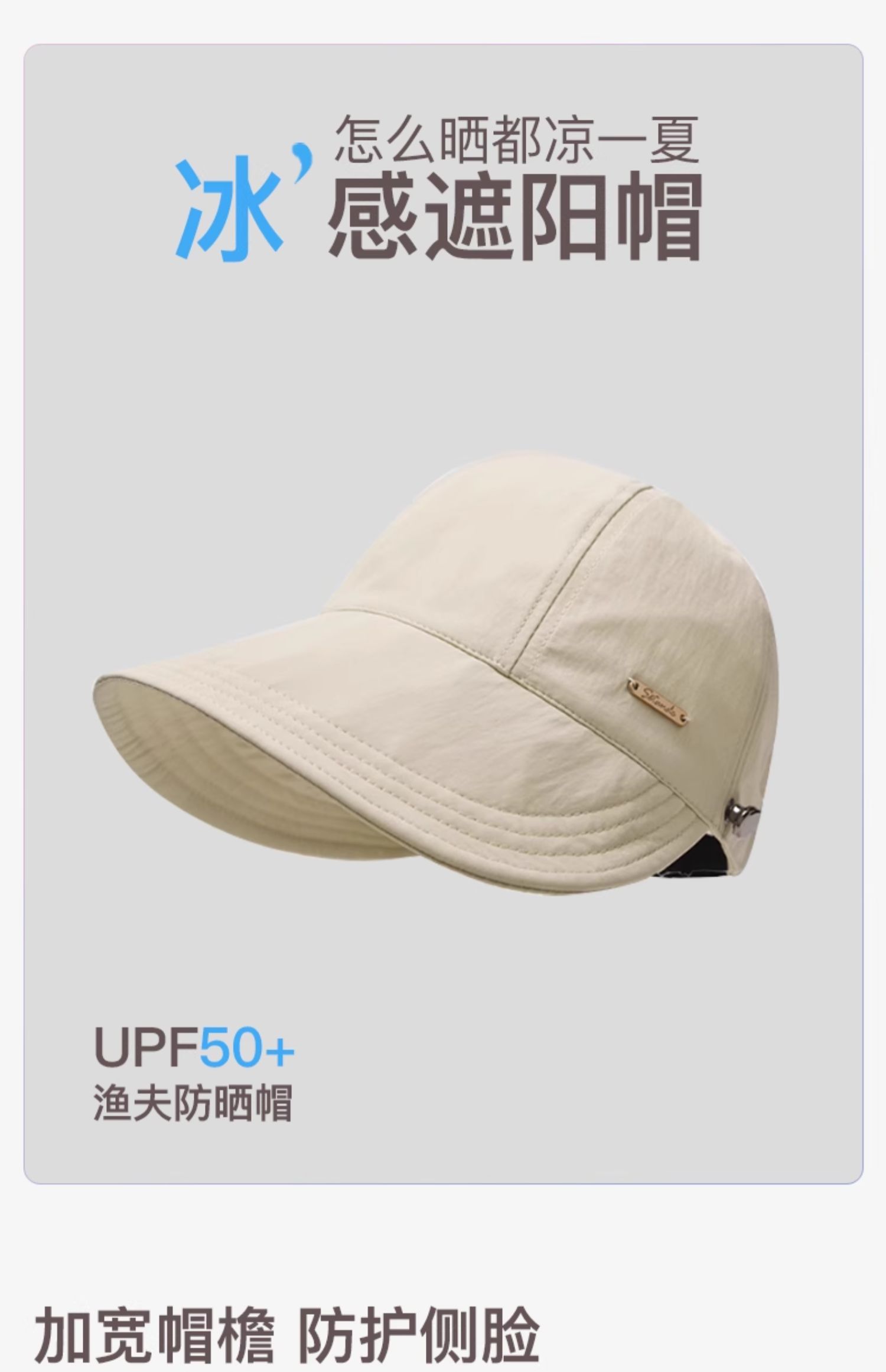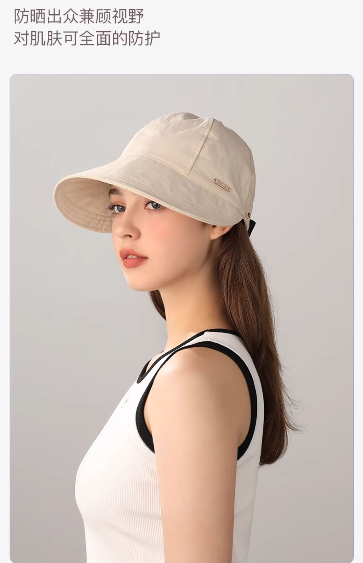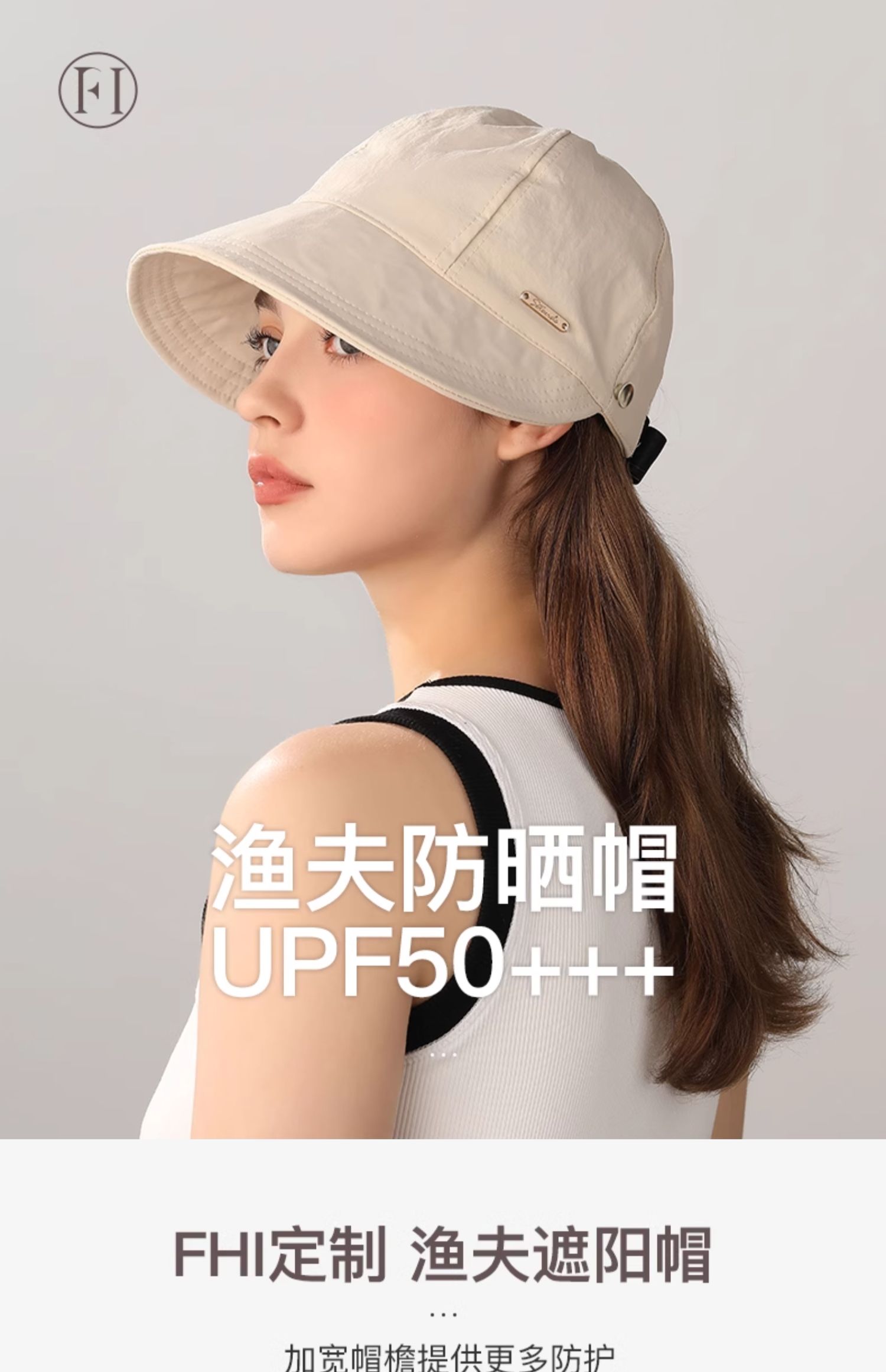 FHI夏季薄款帽子女赵露思同款防紫外线太阳帽大头围遮阳防晒帽