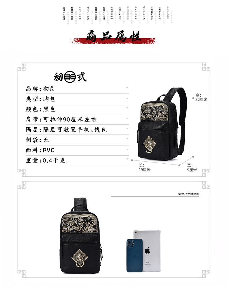 初弎中国风潮牌斜挎包男士小众单肩包高级感休闲潮流复古背包胸包