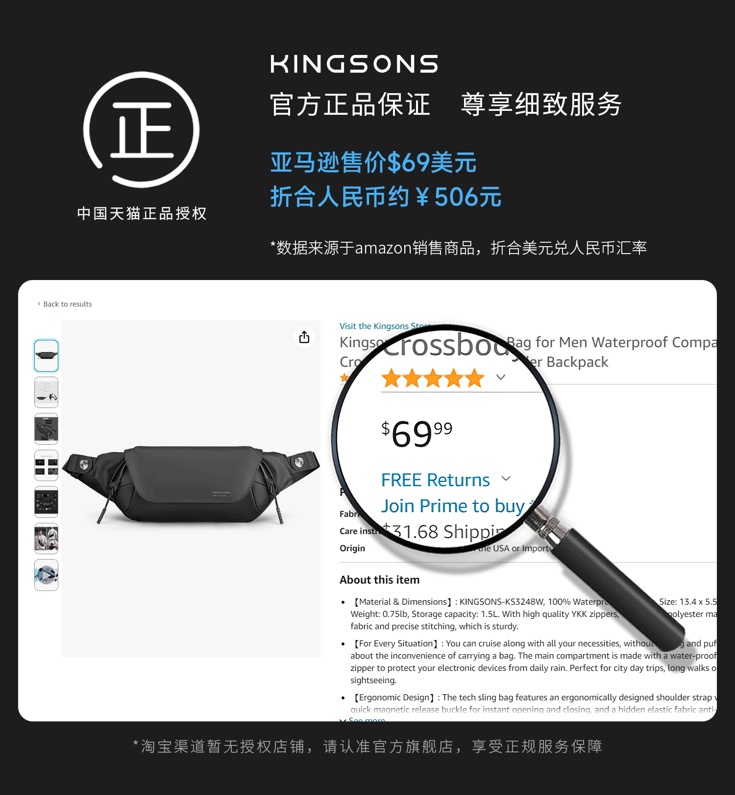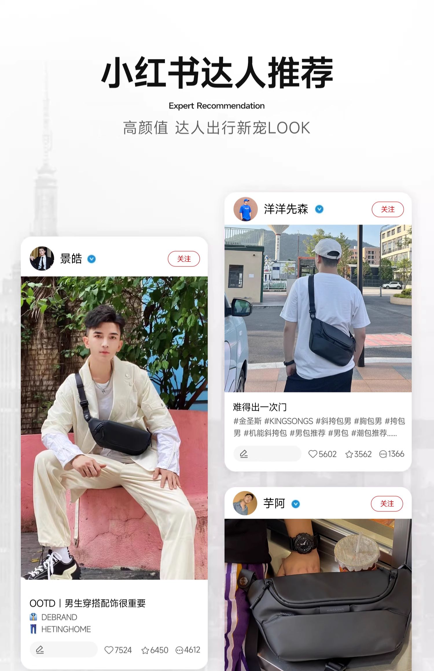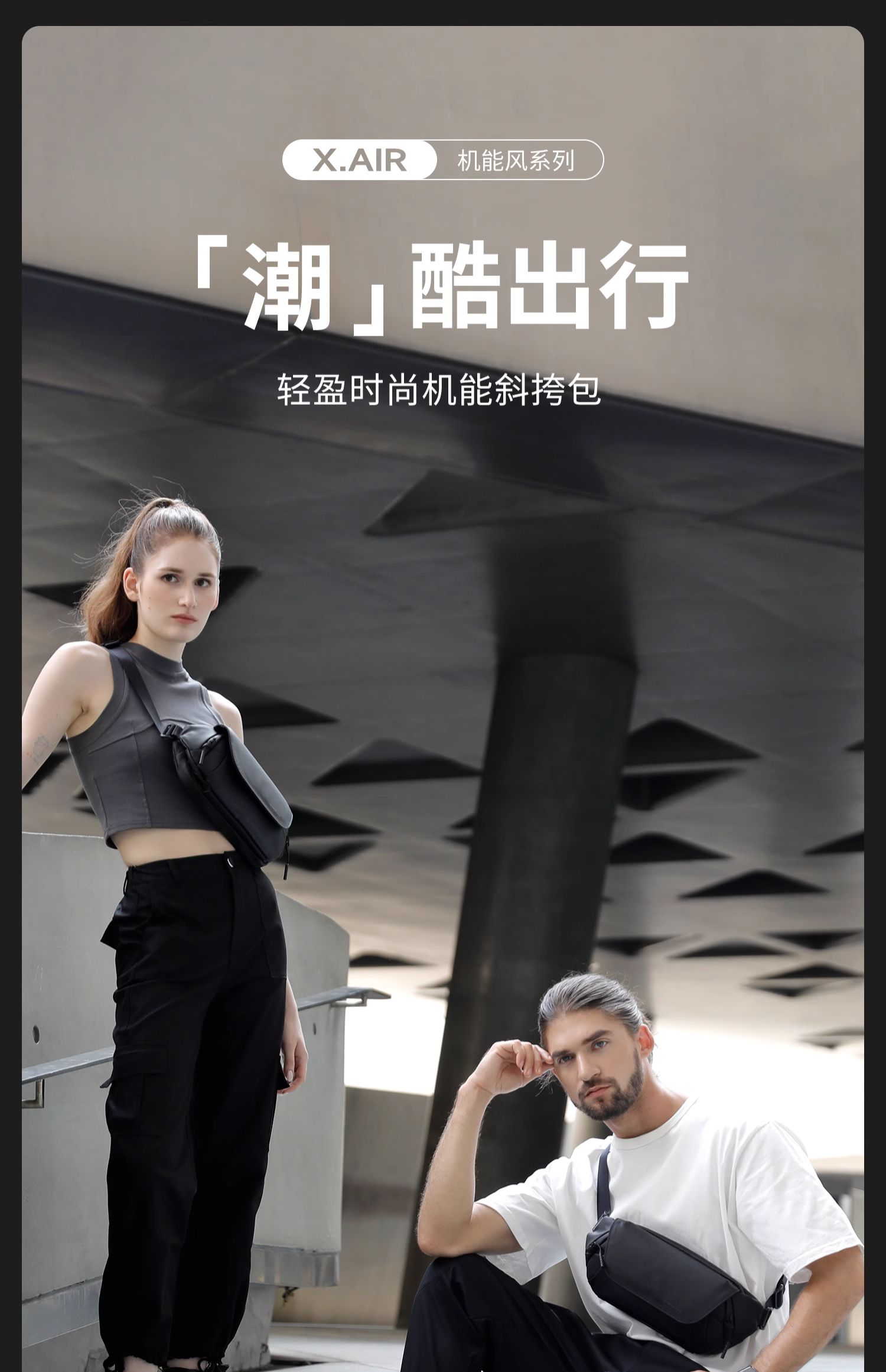 金圣斯男士斜挎包磁铁吸扣潮牌机车款骑行胸包单肩腰包高级感背包