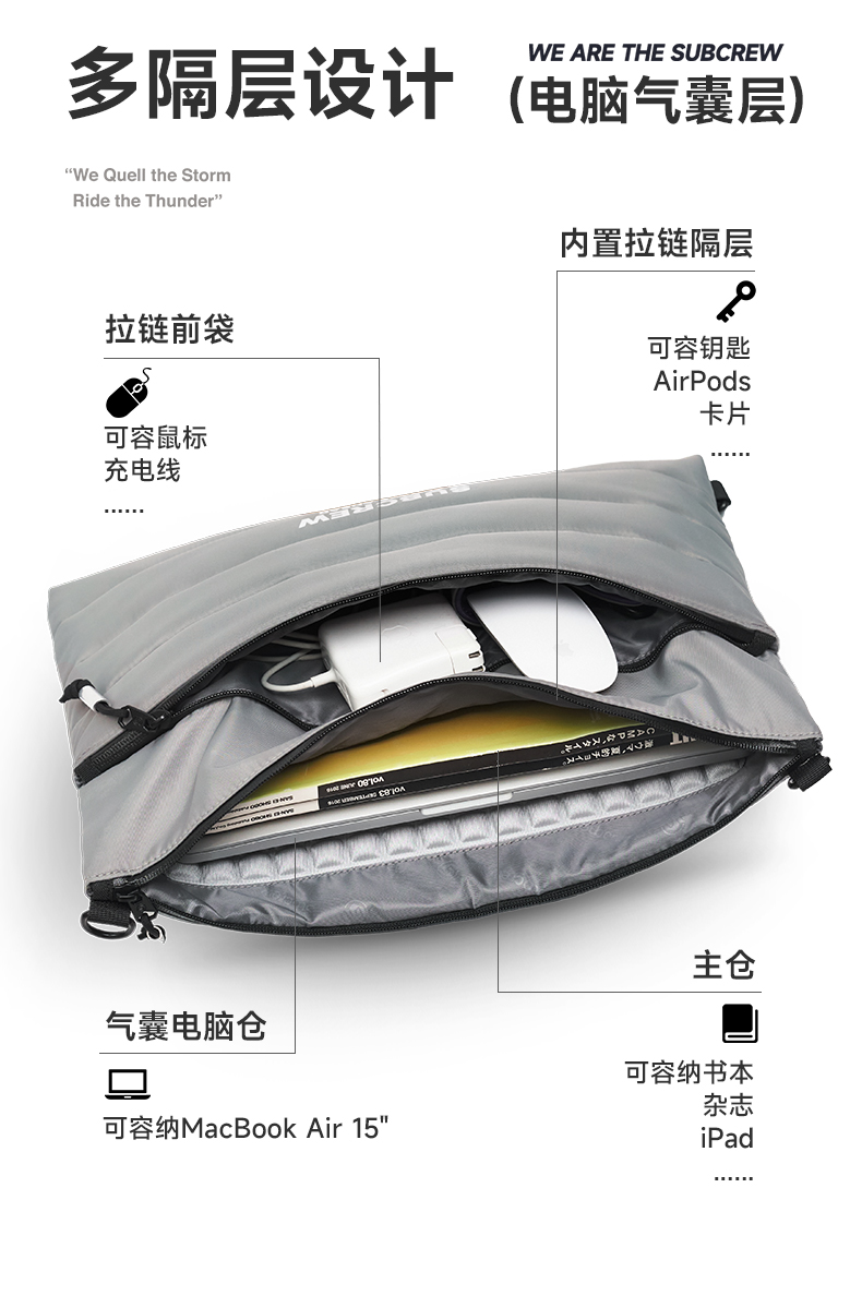 Subcrew笔记本14寸电脑包高级感小众防摔防震单肩手提斜挎包男女
