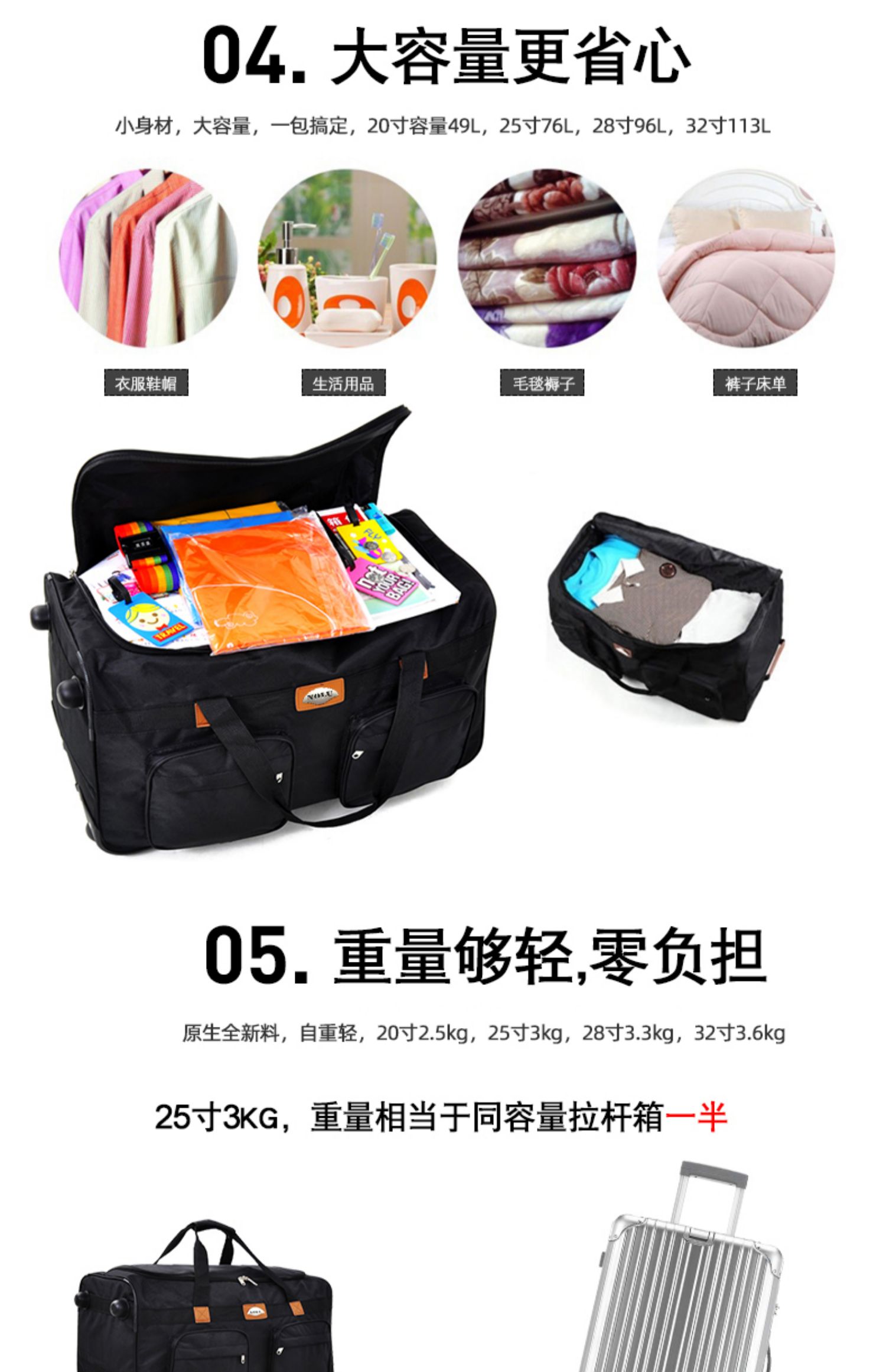 Nolu大容量拉杆包 158航空托运包32寸出国旅行箱折叠牛津布行李袋