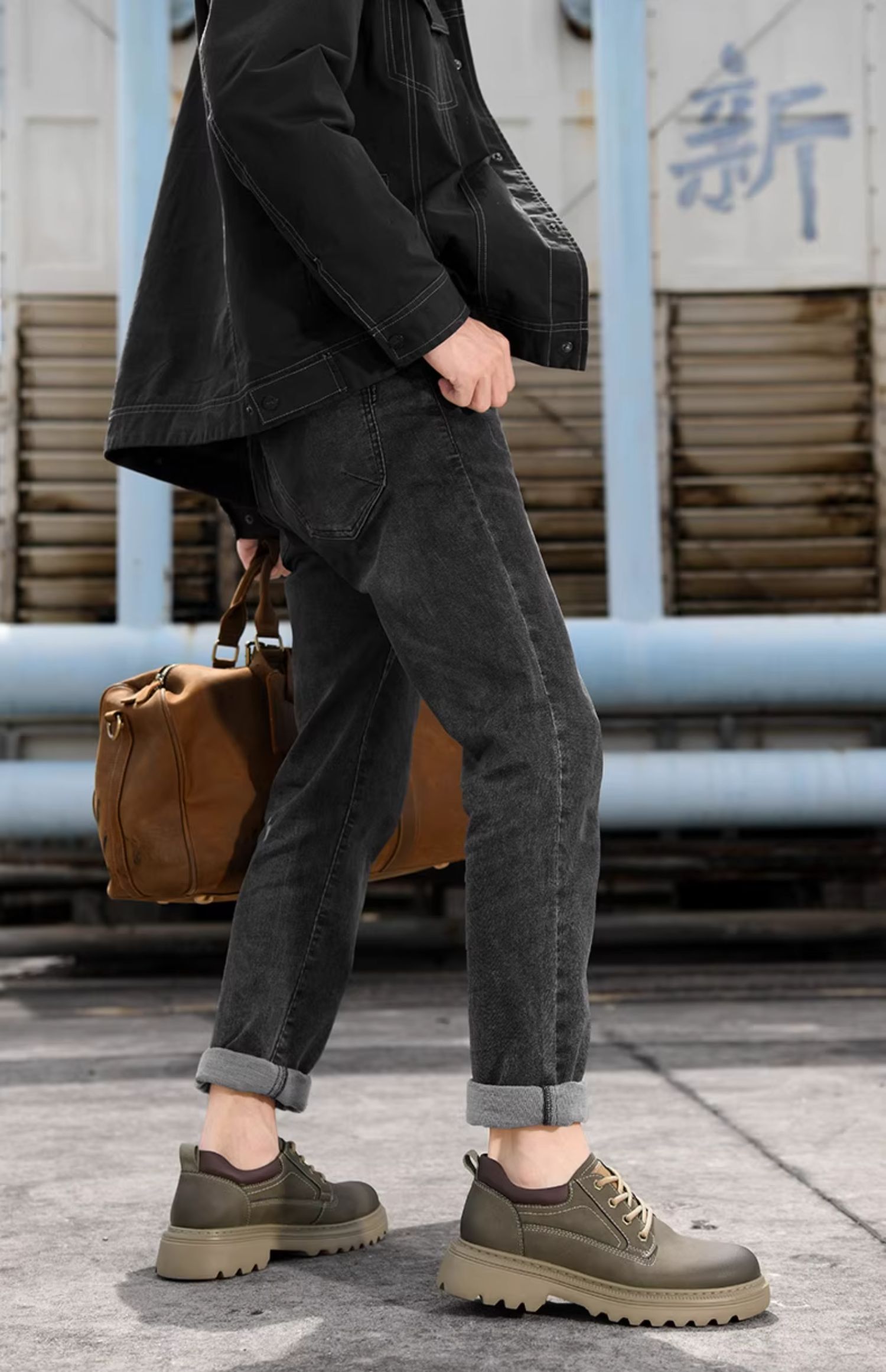 HLA/海澜之家男鞋新款夏季复古百搭耐磨工装鞋低帮透气休闲皮鞋