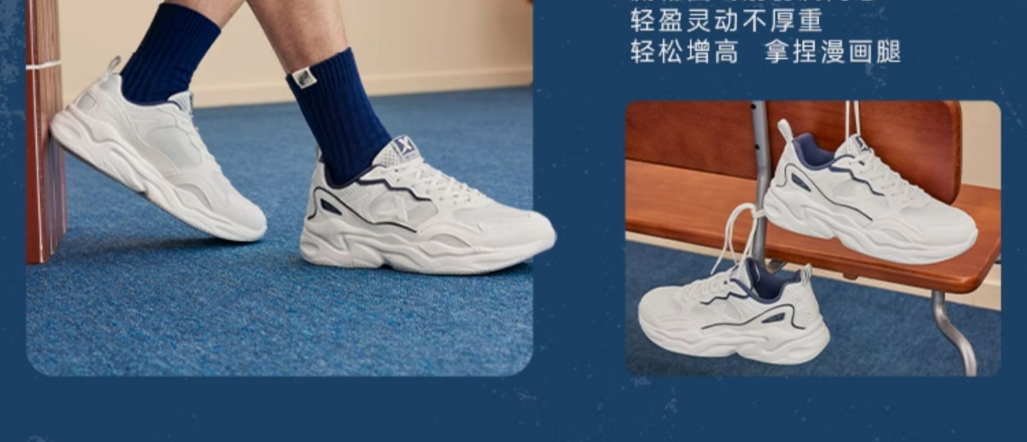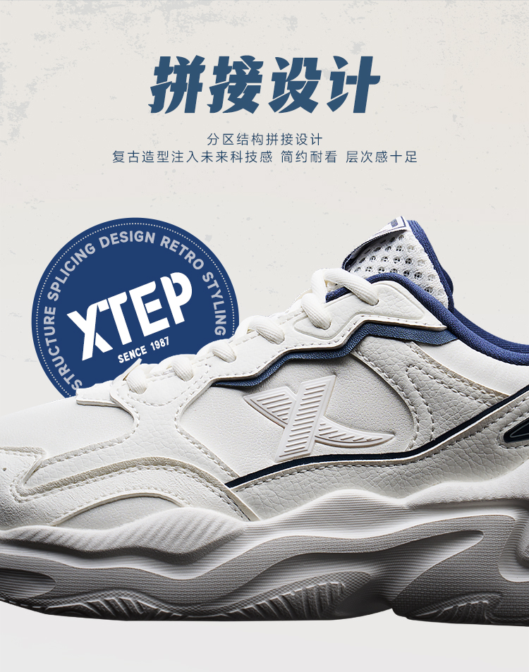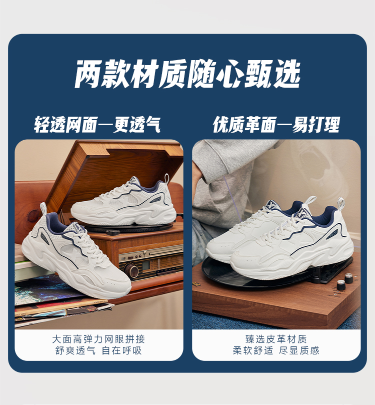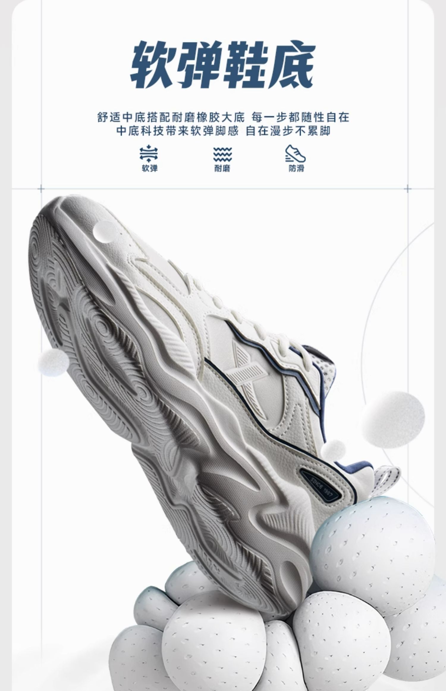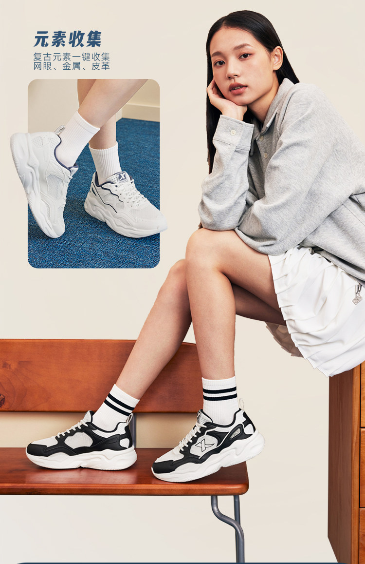 特步星火休闲鞋复古男鞋夏季网面透气厚底增高女鞋革面轻便老爹鞋