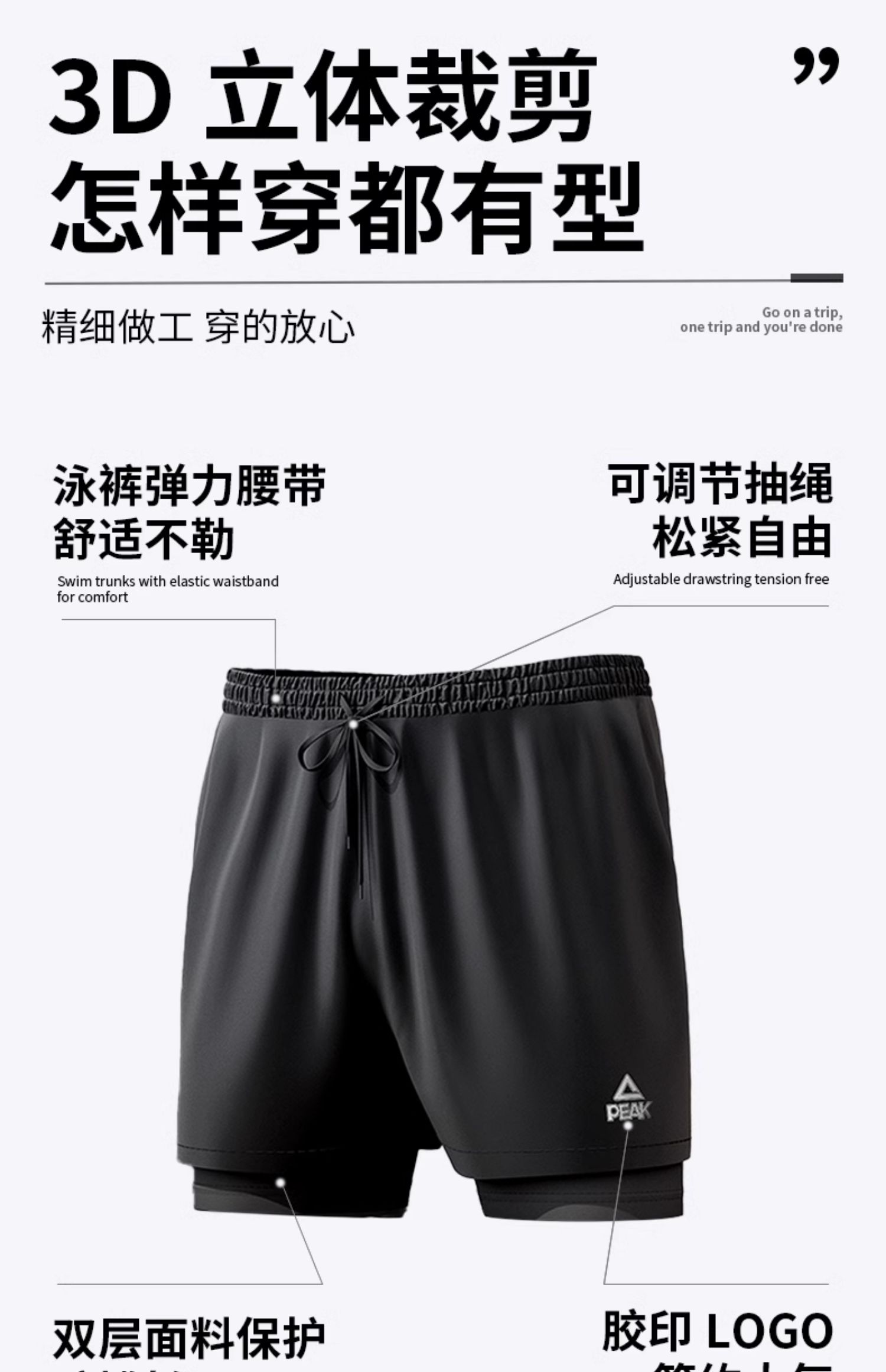 匹克游泳裤男士泳帽泳镜三件套温泉防尴尬沙滩裤男款成人游泳装备