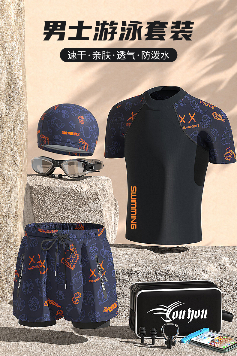 男士泳衣全套装备2025新款式男生成人青少年游泳裤泳帽泳镜三件套