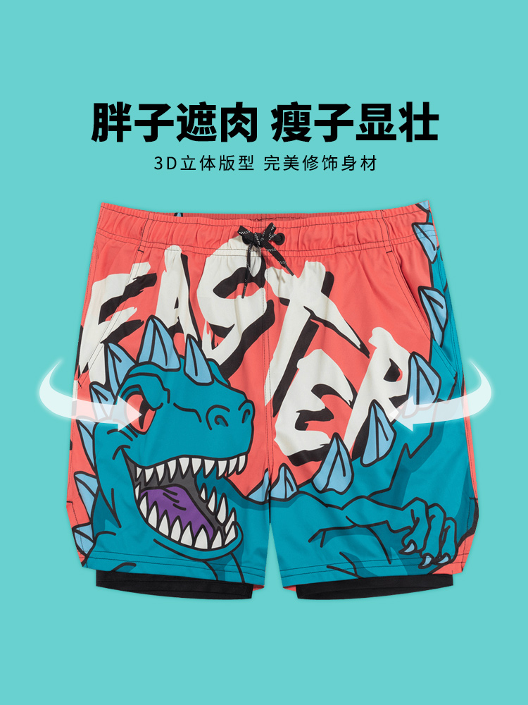 双层泳裤2025新款泡温泉男沙滩裤海边冲浪泳衣套装防尴尬速干大码