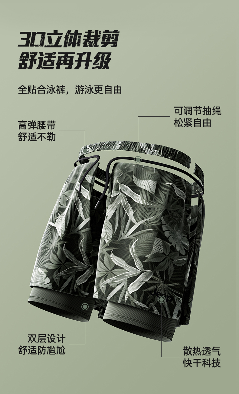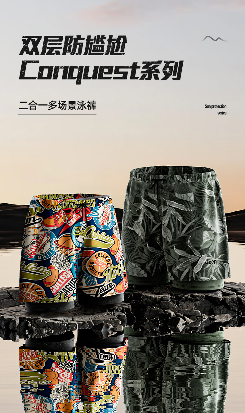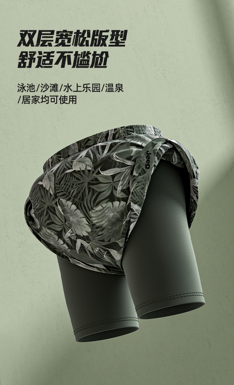 Jeep泳裤男款防尴尬泳衣2025新款成人沙滩裤泳帽泳镜套装备男温泉