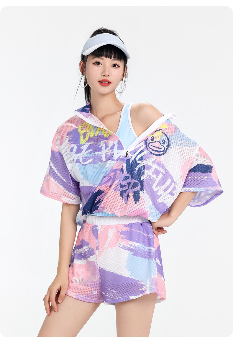B.Duck分体泳衣女显瘦遮肚保守三件套2024新款泡温泉大码游泳装备