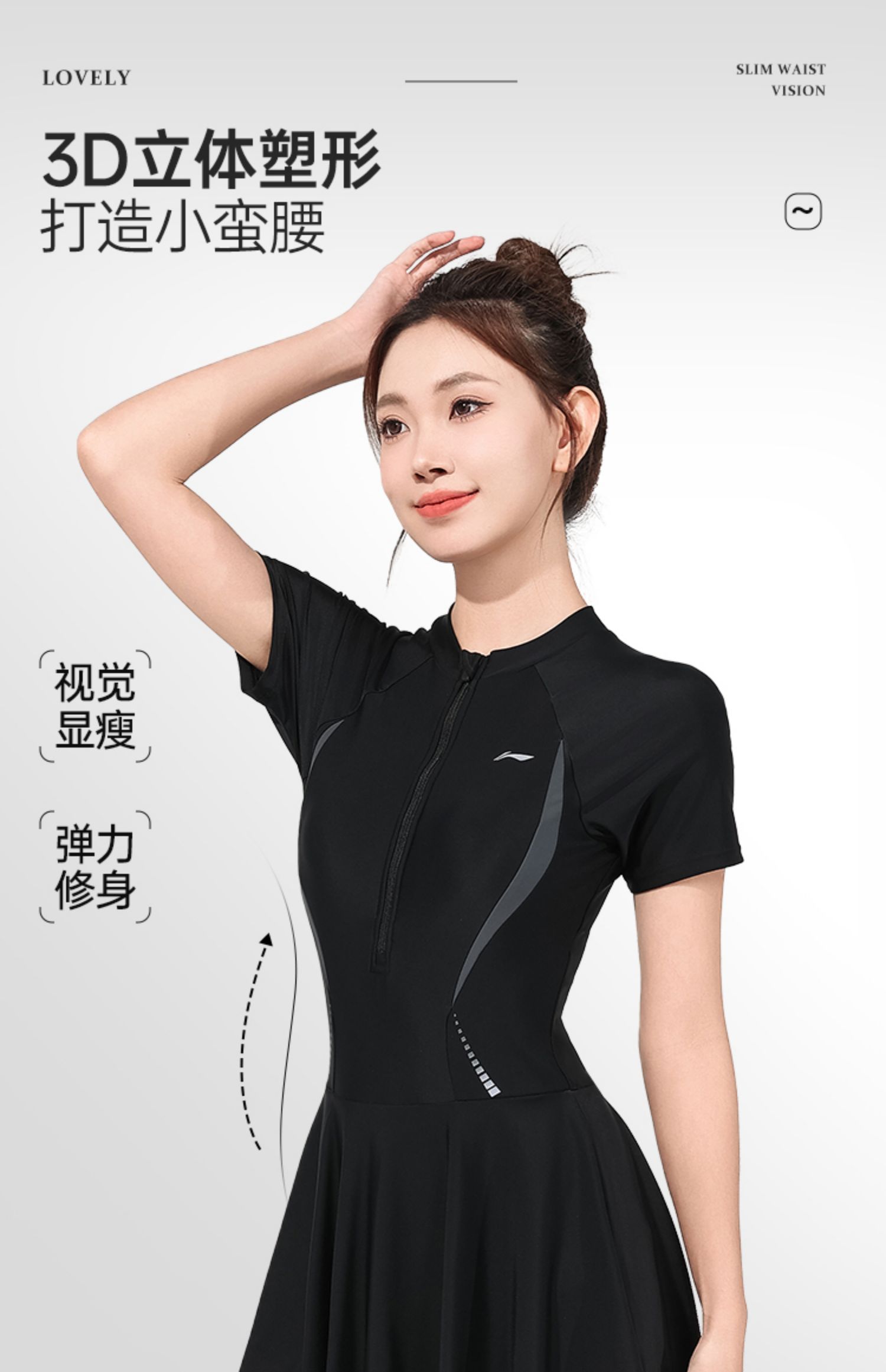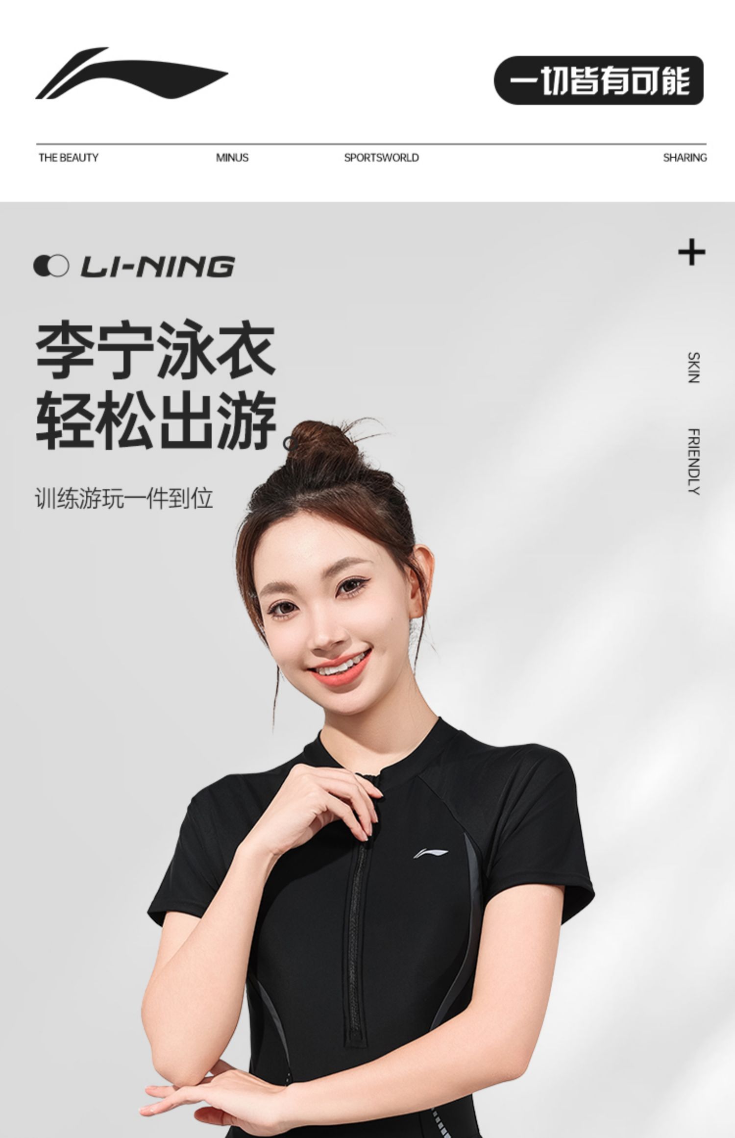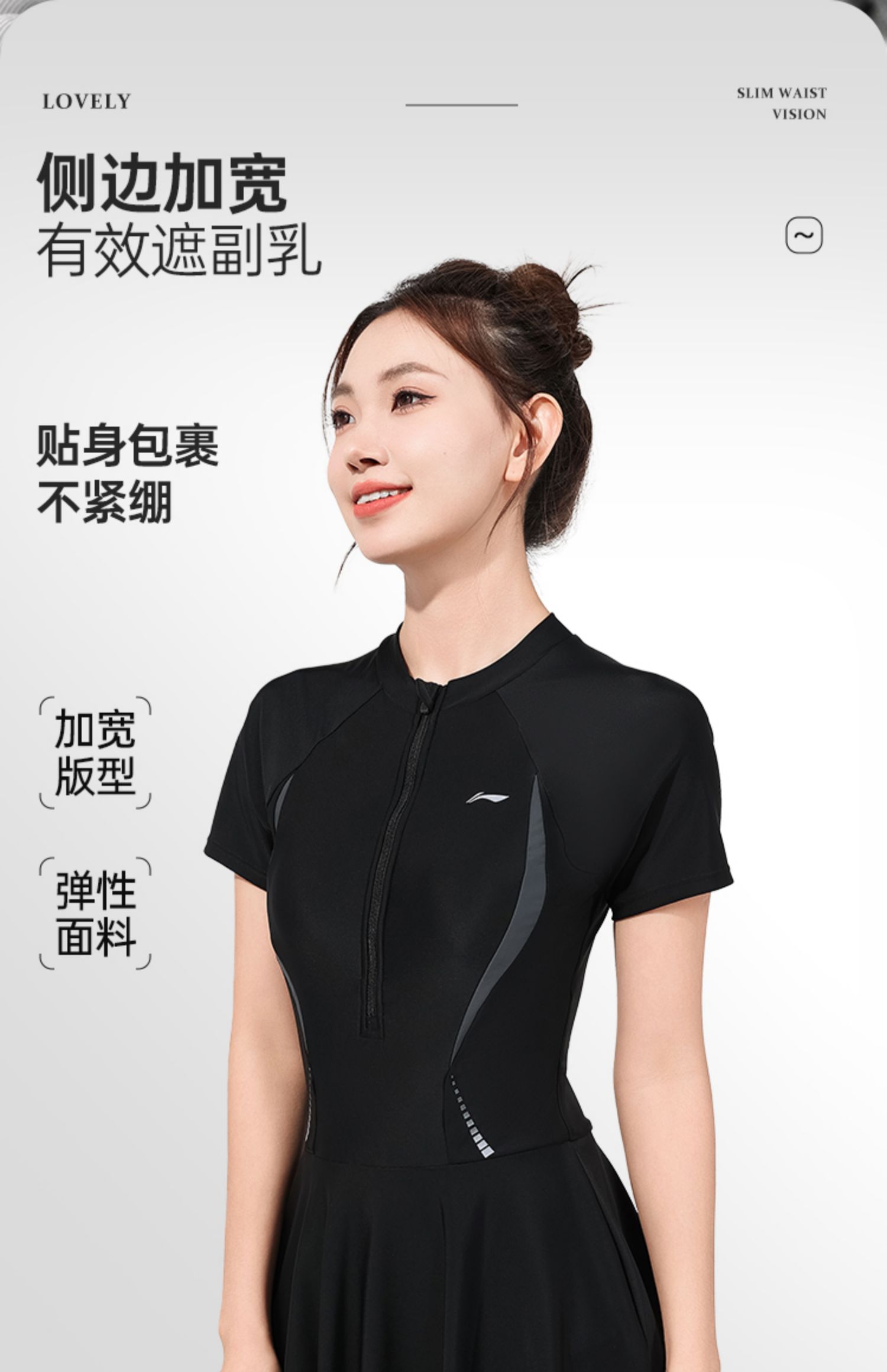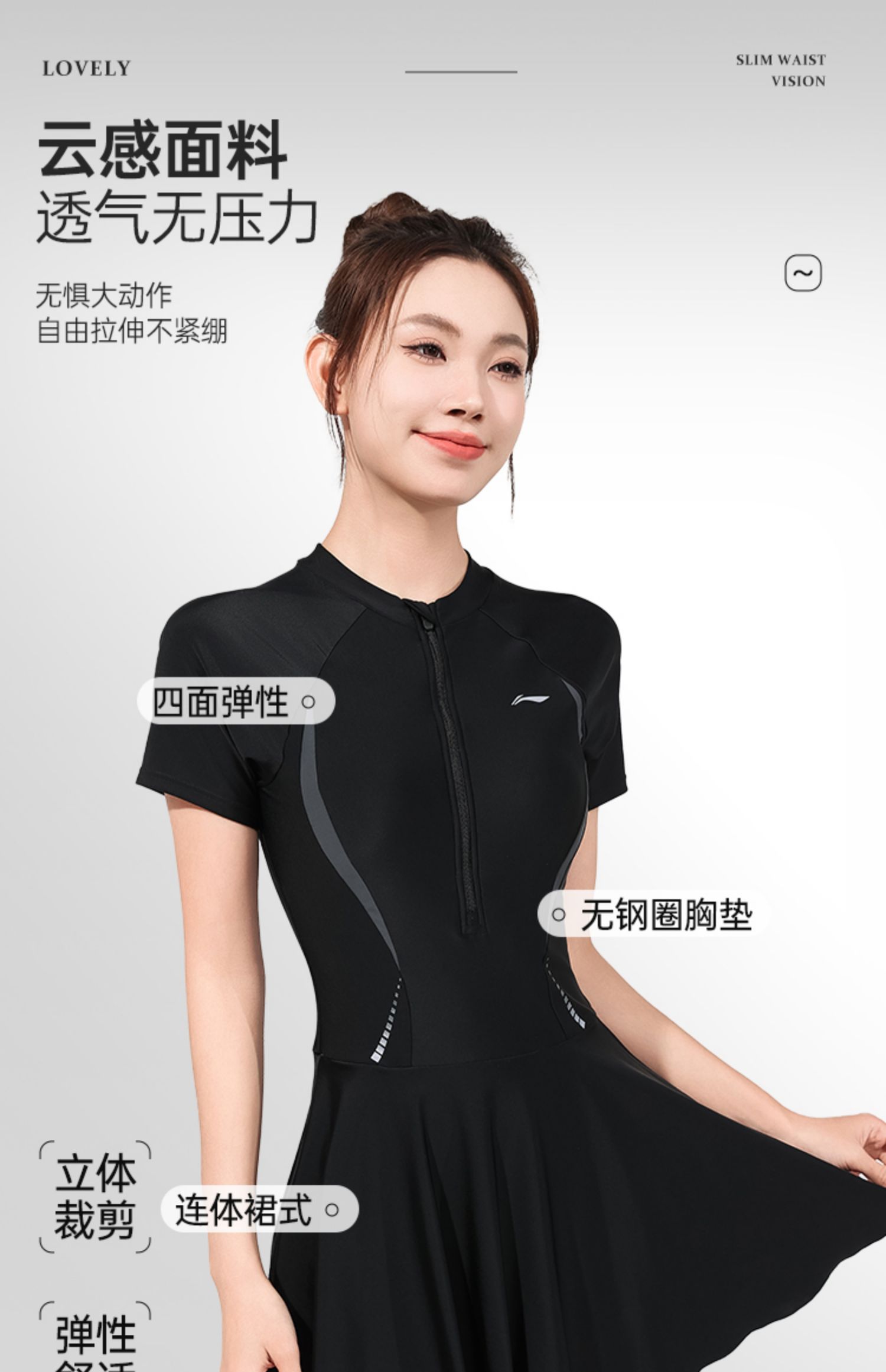 李宁泳衣女款2025新款女士大码连体温泉泳装成人游泳馆专用游泳衣
