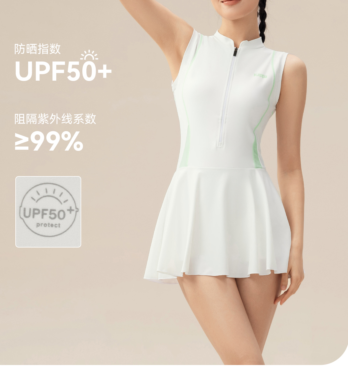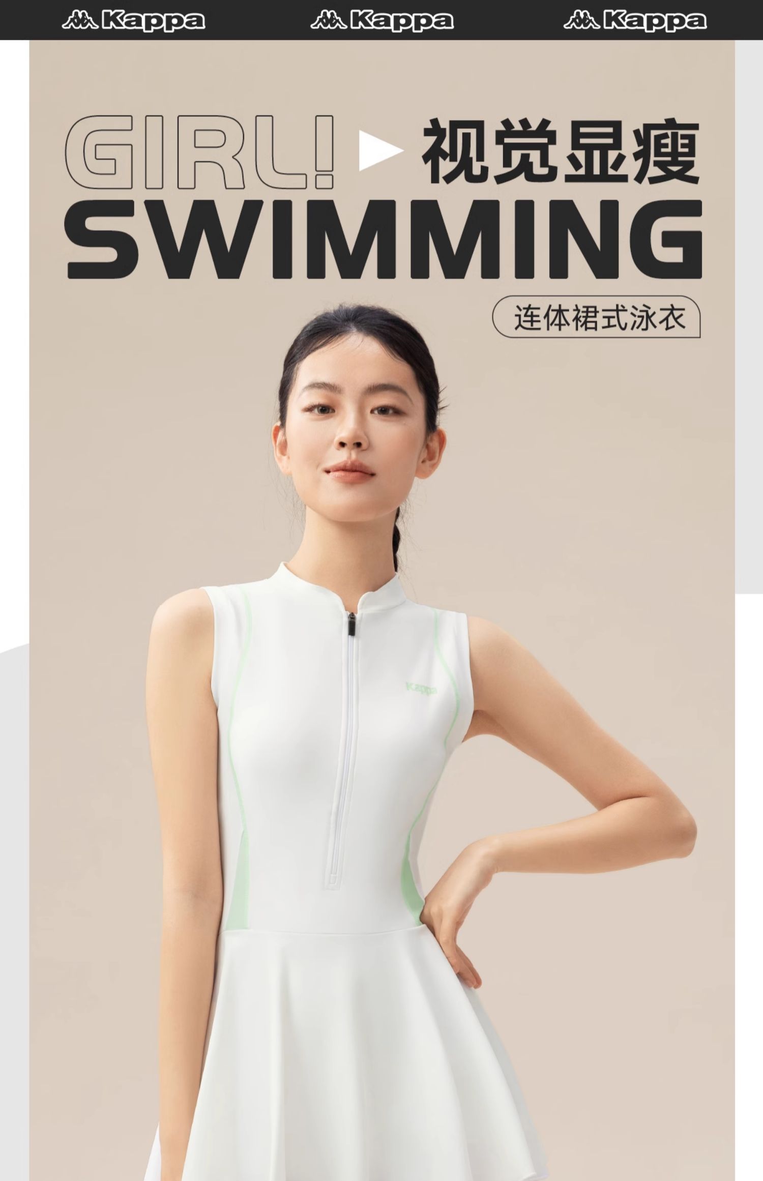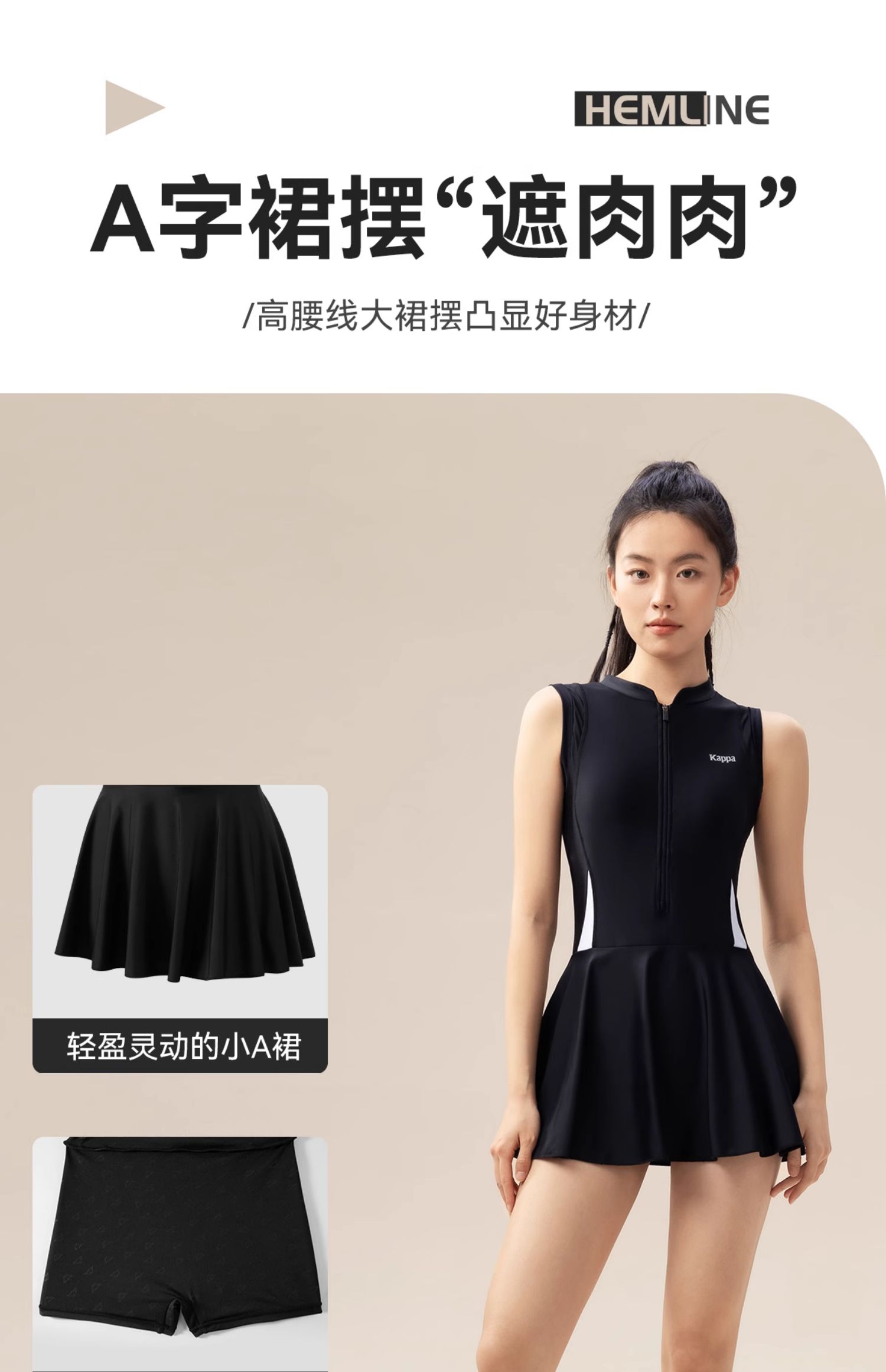 Kappa连体游泳衣女孩款防晒保守大码女士泳装2025新款游泳馆专用