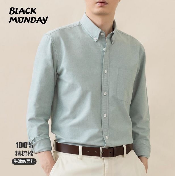 春秋季全棉衬衫男士设计感小众休闲宽松青年长袖牛津纺衬衣外套潮