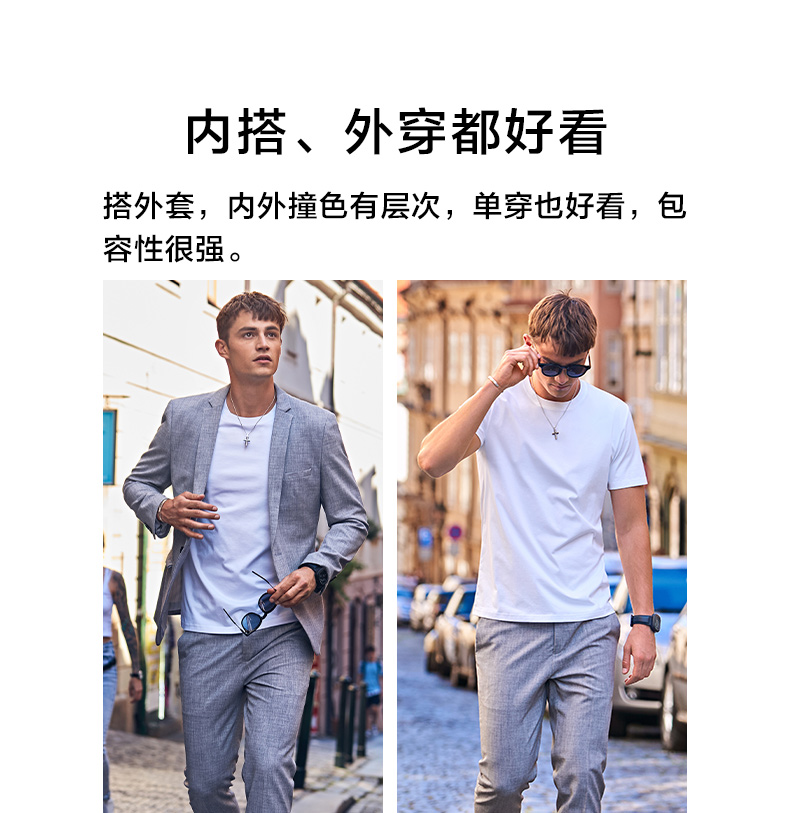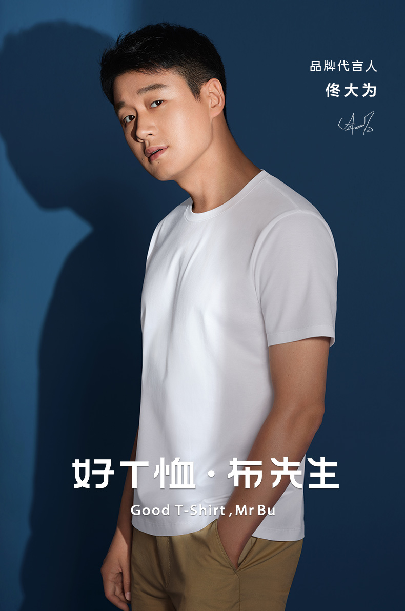 佟大为同款MrBu布先生长绒棉纯白色短袖T恤男 体恤圆领纯棉打底衫