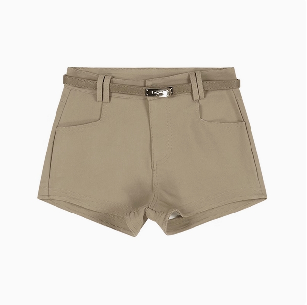 美式白色休闲短裤女夏季高腰紧身弹力裤子卡其色辣妹a字包臀热裤