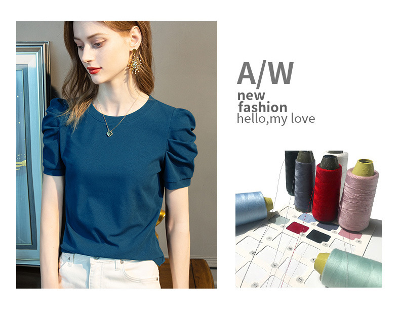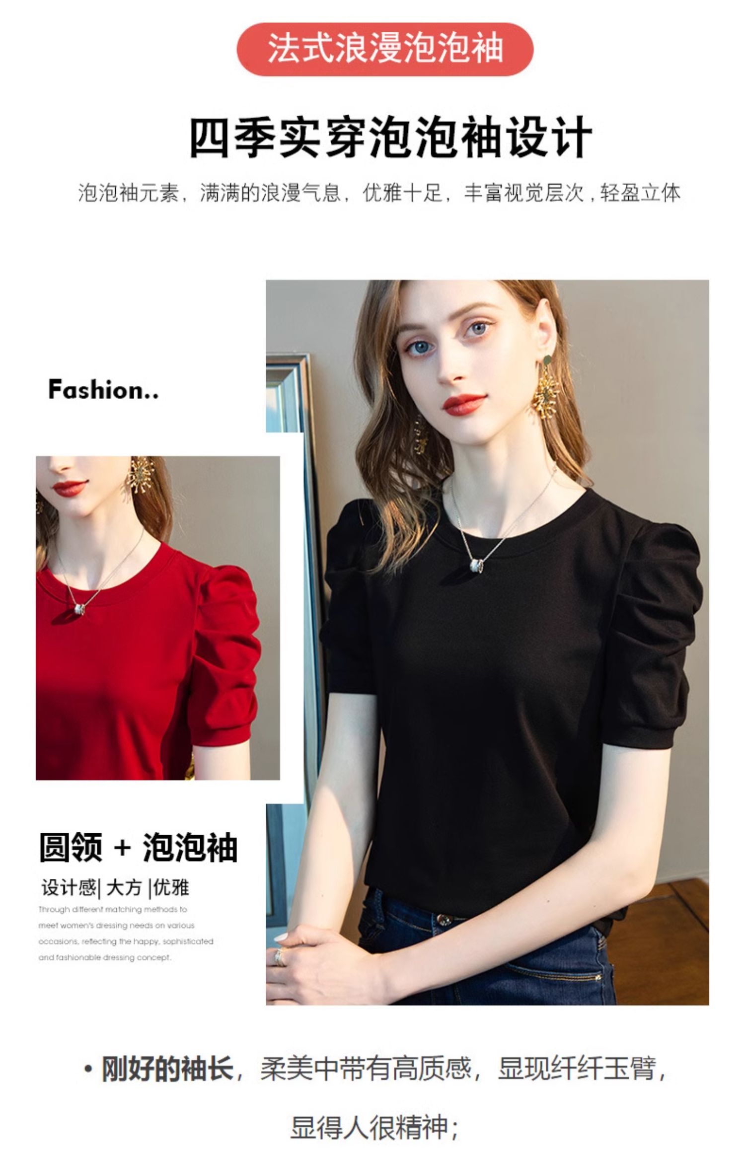 黑色短袖t恤女夏2025新款夏季泡泡袖高级感轻奢小众纯棉体恤上衣