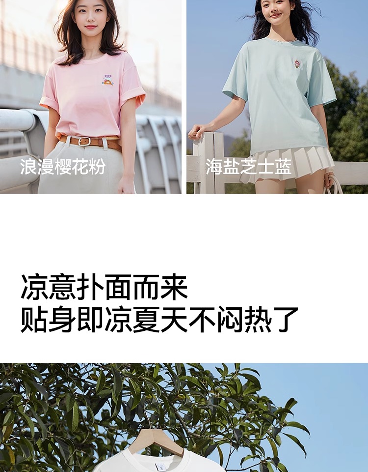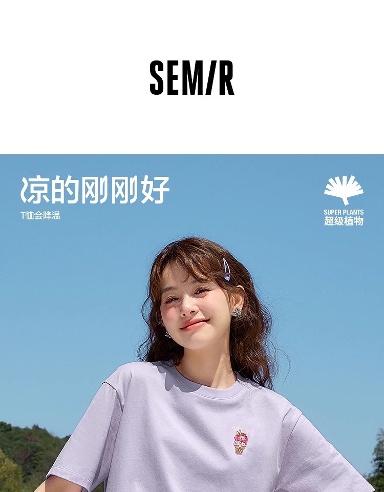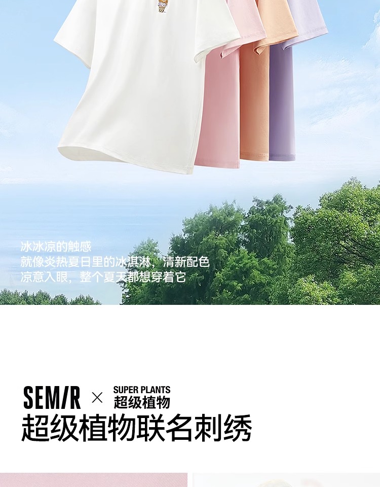 [凉感T]森马x超级植物短袖T恤女抗菌2024夏新款宽松刺绣上衣百搭