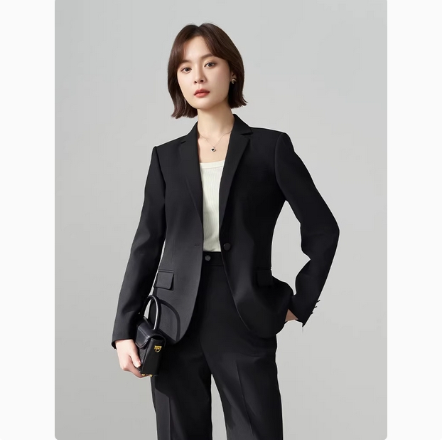 黑色正装西服套装女士夏季职业小个子收腰面试公考高级感西装外套